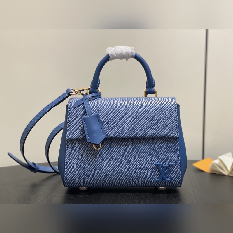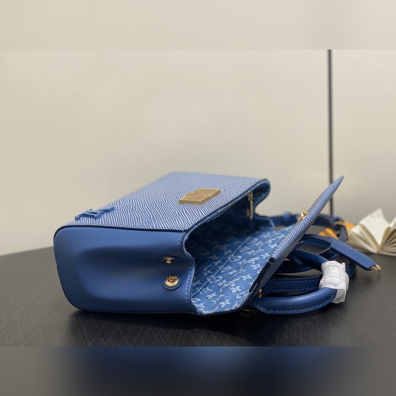 M14855 그레이블루 물결무늬 핸드백 Cluny mini 핸드백 니콜라 제스키엘이 2015 봄/여름 패션쇼에서 처음 선보인 데님 느낌의 마감 처리로 새롭게 출시된 Cluny Mini. 블라우스 하우스의 상징적인 에피 가죽 소재. 클래식한 느낌과 현대적인 분위기가 조화를 이룬 디자인. Kybell과 LV 이니셜을 포함한 시그니처 디테일이 포인트를 주는 아이템. 지퍼 포켓과 플랫 포켓으로 구성되었으며 내부에는 모노그램 데님 소재 안감이 적용되었습니다. 크로스백 숄더백 또는 핸드백으로 연출 가능한 스타일. 사이즈: 20 x 16 x 7.5cm(가로 x 높이 x 깊이)