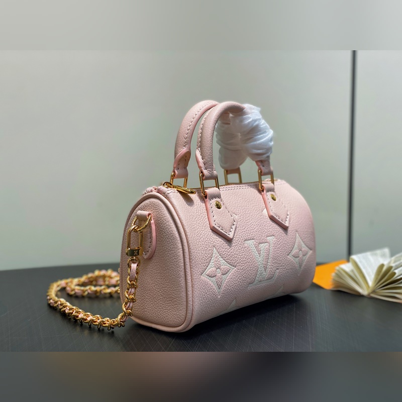 M824550 밀크셰이크 파우더 M14226 풀 가죽 스피디 베개 백 본 나노 스피디 핸드백은 브랜드의 클래식 모노그램 엠프린트 가죽으로 모던하고 컴팩트한 실루엣을 연출하며 부드러운 색조가 눈부신 메탈 디테일을 돋보이게 합니다. 탈부착 가능한 스트랩 체인이 다양한 착용 옵션을 제공합니다. 낮과 밤의 모든 상황에서 일상 필수품을 체계적으로 수납할 수 있습니다. 10 x 7.5 x 16 cm (높이 x 너비 x 길이)