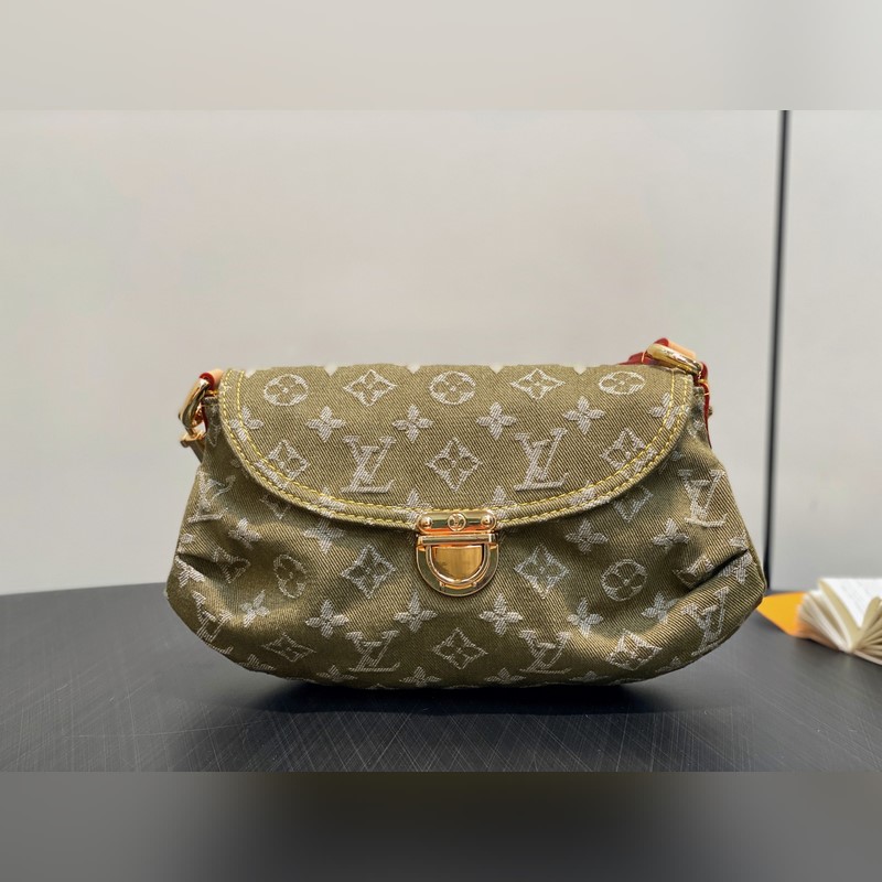 M95217 초록색 단닝 데님 언더암 백 빈티지 데님 숄더백 중고 절판 데님 핸드백 여름 필수 패션 아이템 데님 요소는 절대 유행이 지나지 않아요. 게다가 어떤 스타일과도 완벽하게 어울려서 스타일리시함이 끝이 없어요! 눈 감고 사도 후회 없어요. 사이즈: 26 x 15 x 9 cm.