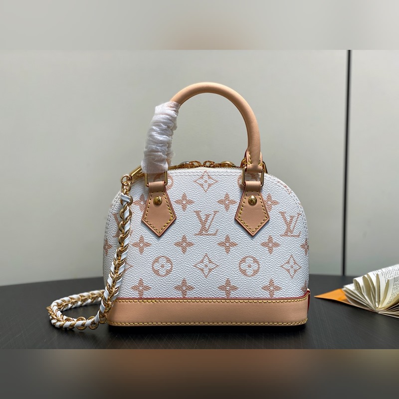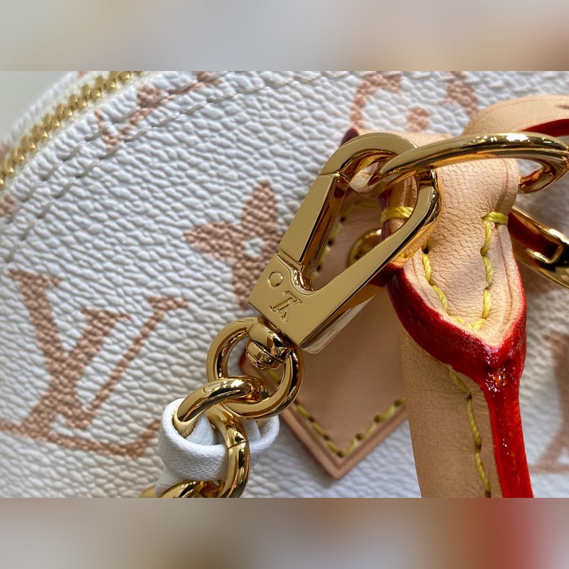 M14339 화이트 플라워 체인 쉘 백 Alma Mini LV&I 핸드백 LV&I 시리즈는 독점적인 미니 사이즈의 아이코닉한 Alma를 특징으로 하는 커스터마이징 가능한 키트를 선보입니다. 착용자만의 개성을 담은 핸드백을 만들기 위해 설계된 이 제품은 일곱 가지 스타일과 다양한 컬러 및 마감 옵션으로 구성됩니다. 추가 구성품(미러 명판 또는 기능성 클립 등)을 선택하기 전에 먼저 스트랩 또는 체인을 선택하세요. 마지막으로 상징적인 자물쇠부터 다채로운 비비엔 마스코트까지 세 가지 슬라이드형 펜던트를 포함합니다. 18 x 12 x 8 cm.