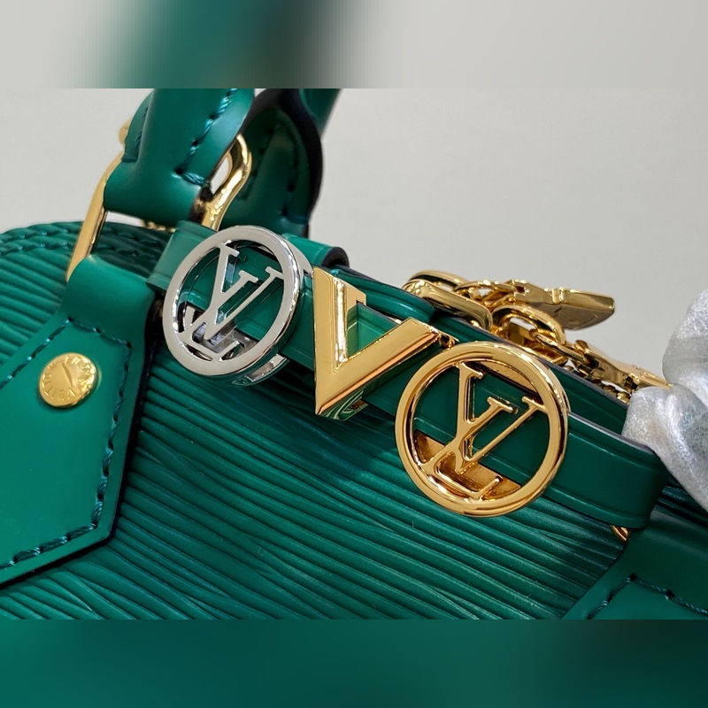 M14339 그린 체인 물결무늬 조개 가방 Alma Mini LV&I 핸드백 LV&I 시리즈는 독점적인 미니 사이즈의 상징적인 Alma를 특징으로 하는 커스터마이징 가능한 키트를 선보입니다. 착용자만의 개성을 담은 핸드백을 만들기 위해 설계된 이 키트는 일곱 가지 스타일과 다양한 컬러 및 마감 옵션으로 구성됩니다. 추가 구성품(미러 명판 또는 기능성 클립 등)을 선택하기 전에 먼저 스트랩 또는 체인을 선택하세요. 마지막으로 상징적인 자물쇠부터 다채로운 비비엔 마스코트까지 세 가지 슬라이드형 펜던트를 포함합니다. 18 x 12 x 8 cm.