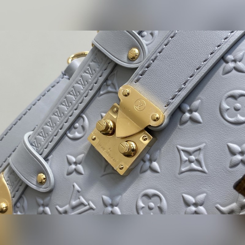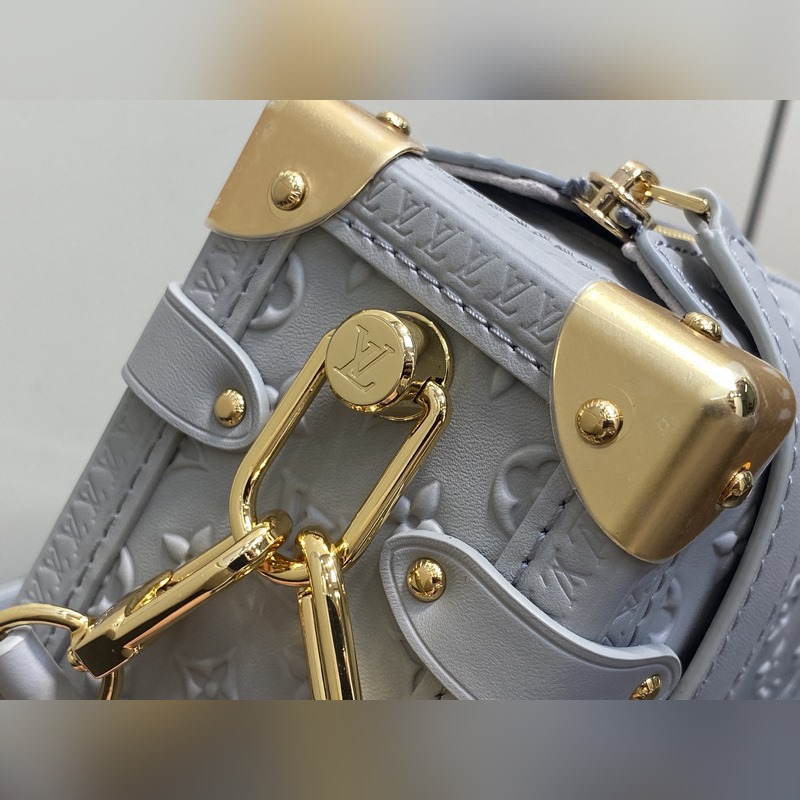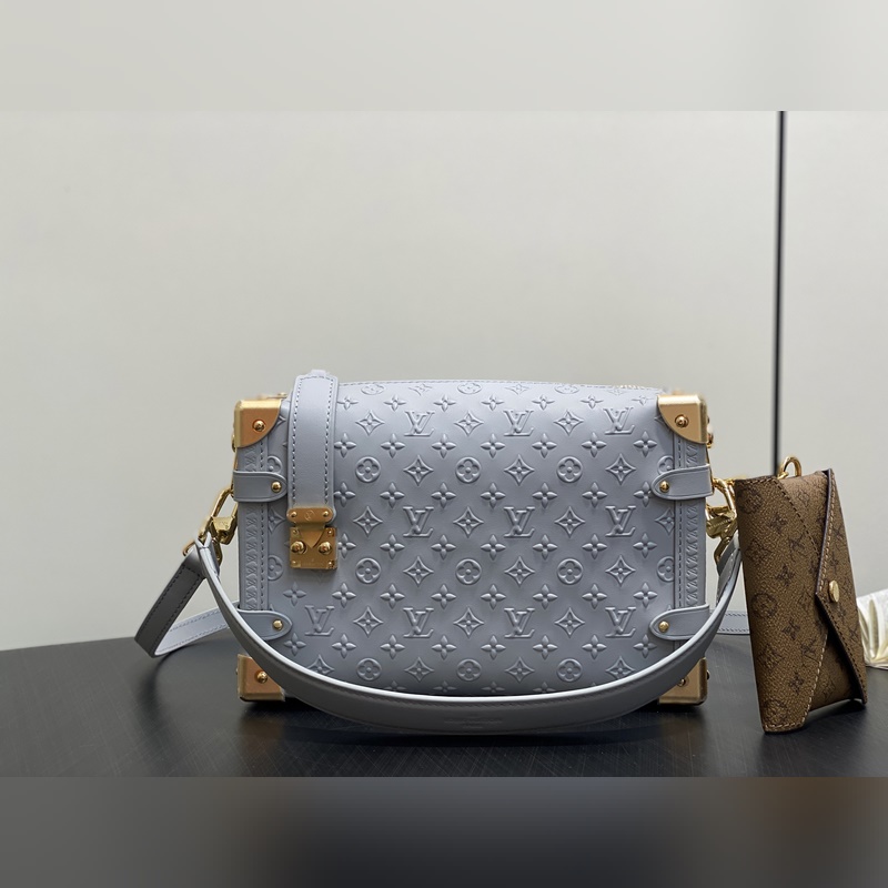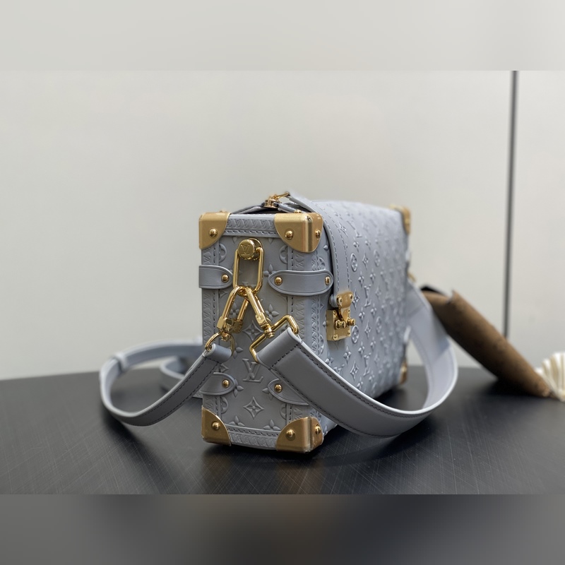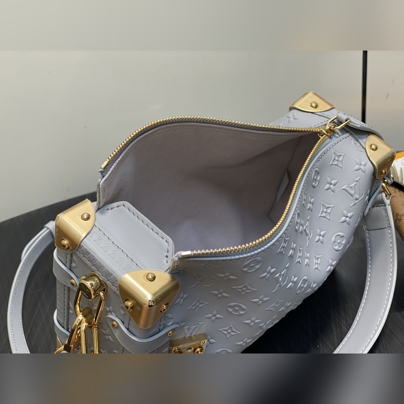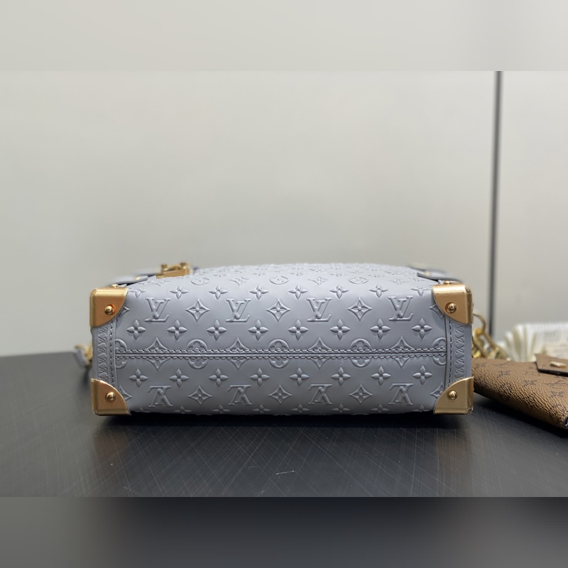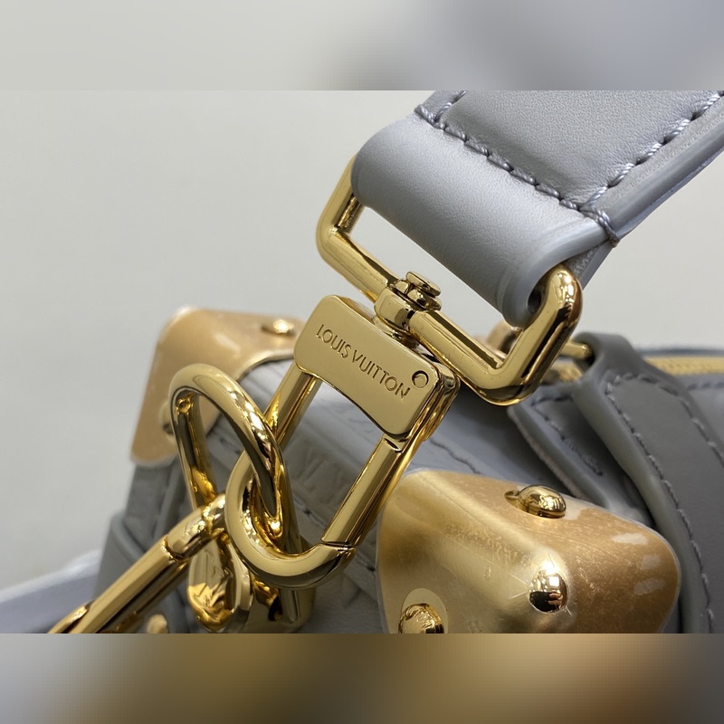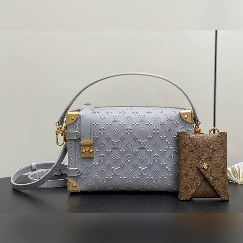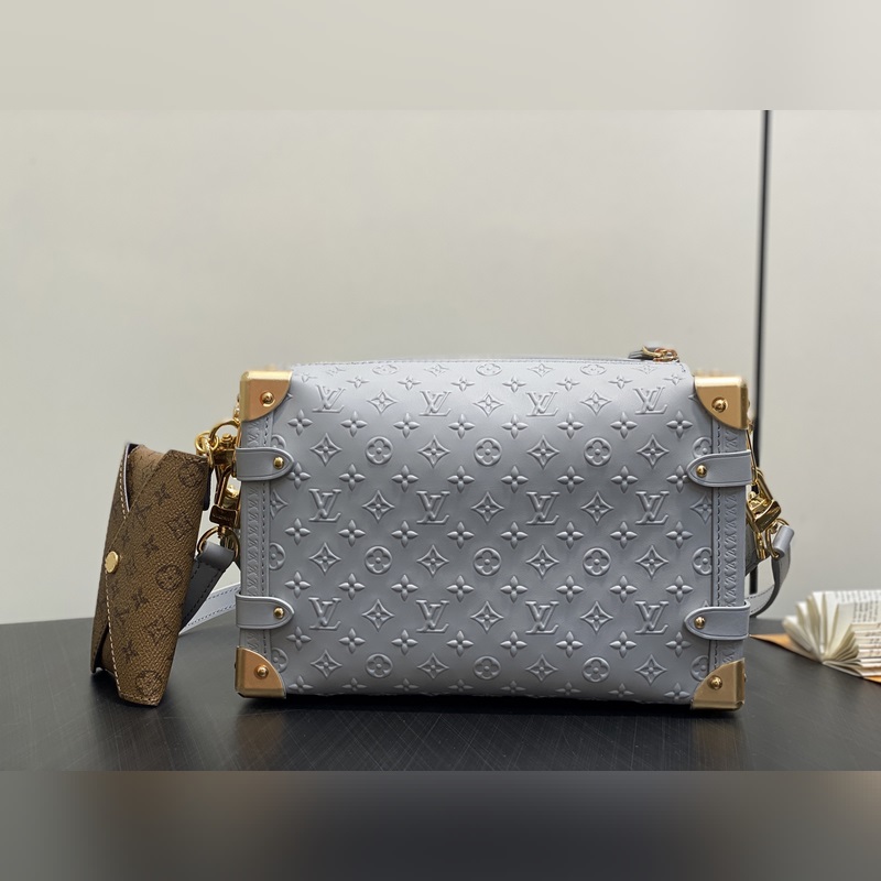 M25602 그레이 컬러 소형 가방 전체 가죽 소프트 케이스 사이드 트렁크 미디엄 핸드백 본 사이드 트렁크 미디엄 핸드백은 소가죽 위에 절제된 미니어그램 볼드 로고를 각인하고 정교한 금속 부품으로 루이 비통의 가방 제작 전통을 드러냅니다. 대비되는 컬러의 모노그램 장식은 니콜라 제스키에르의 첫 쇼 초대장을 재현했으며 카드를 수납할 수 있습니다. 사이즈: 16 x 8.5 x 23.5 cm (높이 x 너비 x 길이)