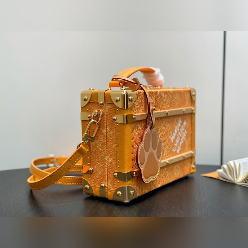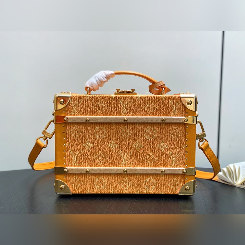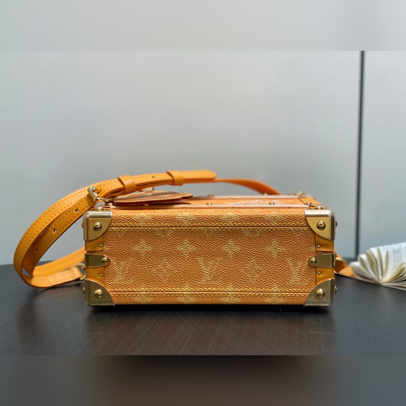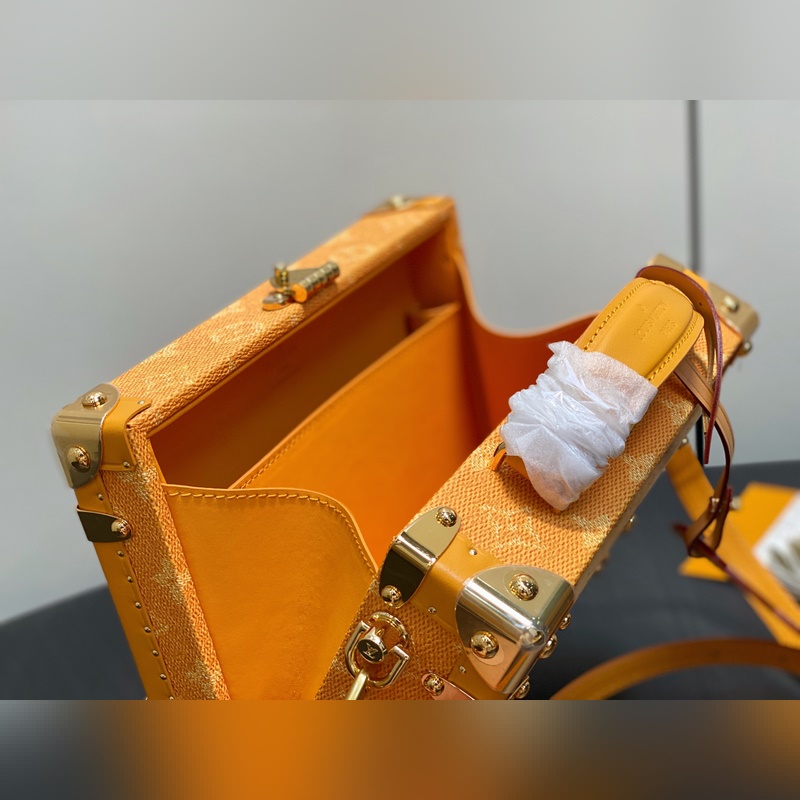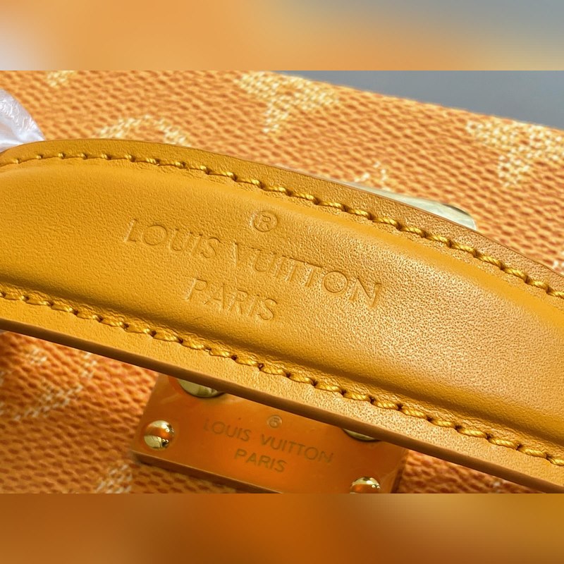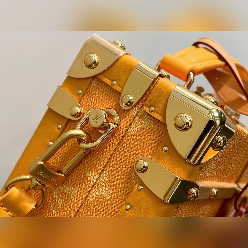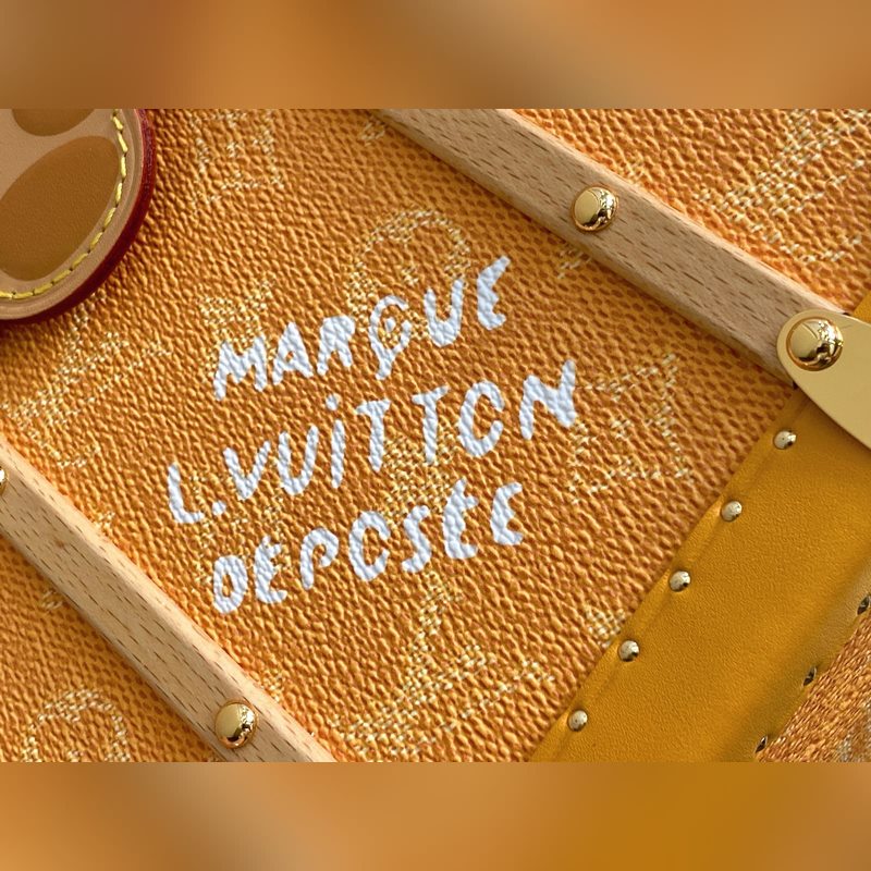 M12458 M11118 황화 박스 백 본 제품 Handle Trunk 핸드백은 Monogram Heritage 캔버스를 소재로 전통적인 Damier 요소의 디테일을 이 제품에 적용하였습니다. Pharrell Williams의 초기 작품에서 영감을 받은 경위직 무늬와 Marque L.Vuitton D?pos?e 로고로 Monogram 패턴을 새롭게 재해석하였습니다. 16.5 x 8 x 24 cm (높이 x 너비 x 길이)