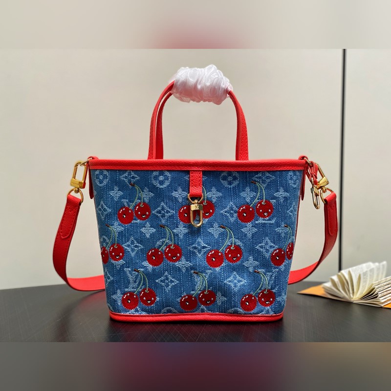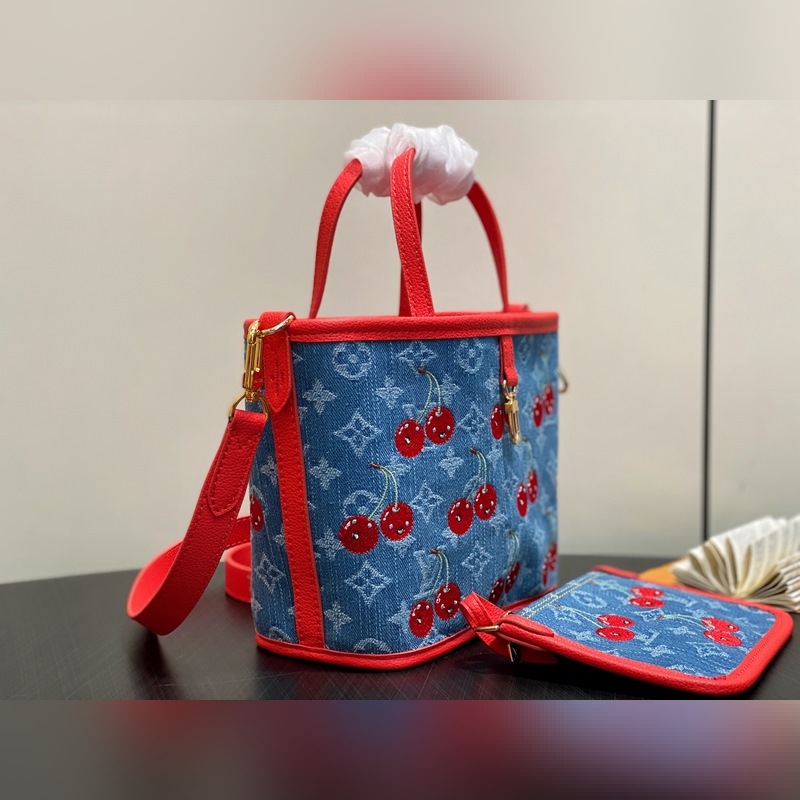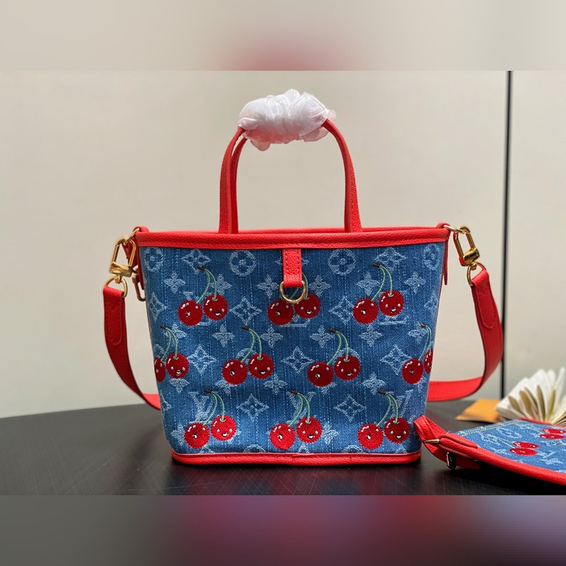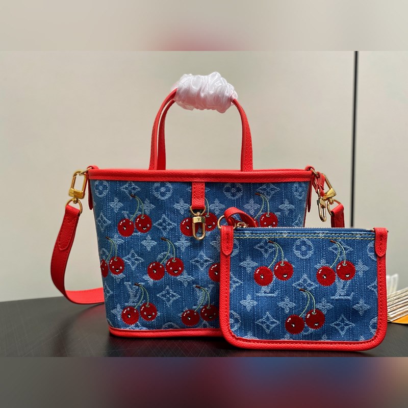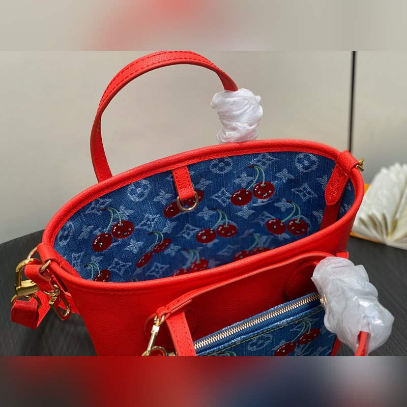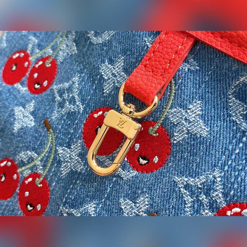 M14997 체리 레드 덴닝 데님 체리 양면 쇼핑백 본 Neverfull Inside Out BB 핸드백은 루이 비통 x 무라카미 타카시 콜라보레이션 리이슈 시리즈로 모노그램 덴닝 천 본체에 선명한 소가죽 트림을 더해 눈부신 터치로 생동감 넘치는 스타일을 구현했습니다. 화려한 체리 자수는 일본 예술가의 선명한 스타일을 담아냈으며 탈부착 가능한 댄닝 지퍼 파우치가 디자인을 완성합니다. 사이즈: 26.5 x 16.5 x 11 cm (길이 x 높이 x 너비)