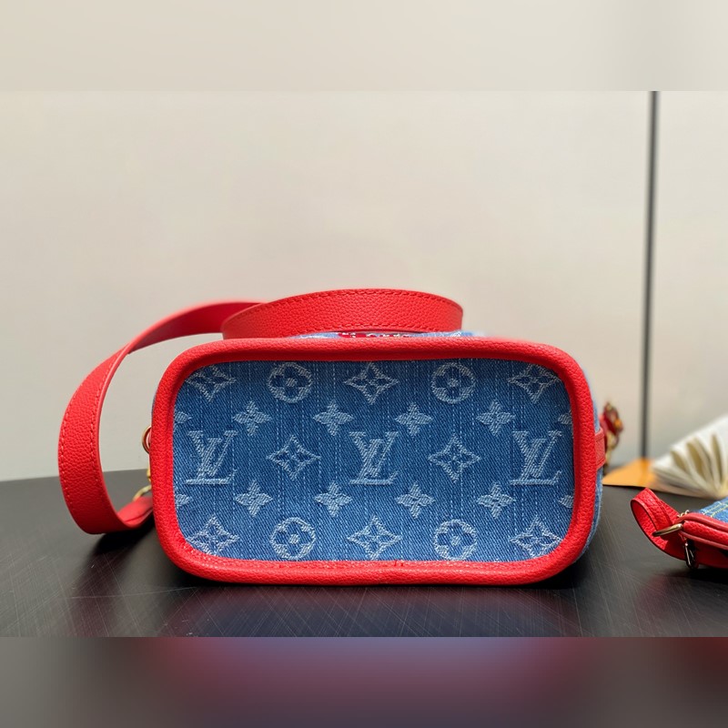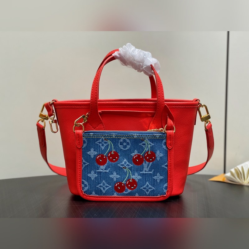 M14997 체리 레드 덴닝 데님 체리 양면 쇼핑백 본 Neverfu