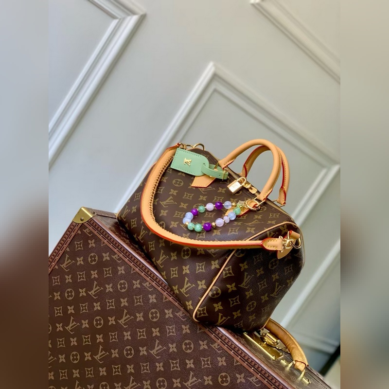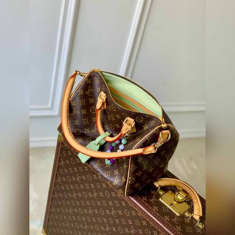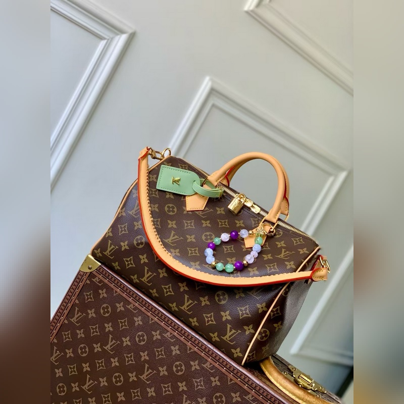 163C01 동적 칩] 최상급 오리지널 단품 정품 개발 본 Speedy Soft 30 Lucky 핸드백은 모노그램 캔버스에 VVN 가죽 트림을 더했으며 보석처럼 빛나는 탈부착 가능한 장식 대비되는 컬러의 안감 메탈 디테일로 세심한 디테일을 강조했습니다. 넉넉한 실루엣으로 태블릿과 일상 소지품을 여유롭게 수납할 수 있습니다. 코팅 캔버스 - 소가죽 트림 - 금속 디테일 - 더블 지퍼 오픈 - 내부 지퍼 포켓 - 탈부착 가능한 장식 - 탈부착 가능한 명판 - 9인치 태블릿 스마트폰 이어폰 Zippy 롱 지갑 선글라스 열쇠 립스틱 수납 가능 - 숄더 스트랩: 탈부착 가능 길이 조절 불가! 모델: M15107 사이즈: 30x21x17CM