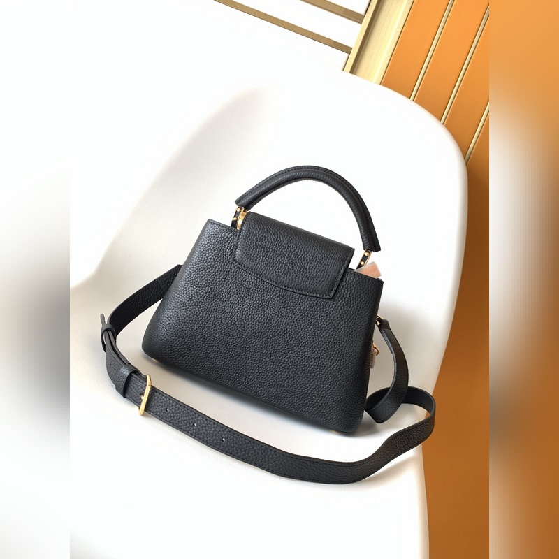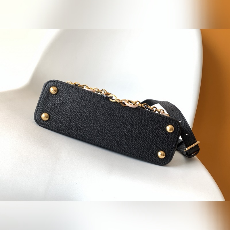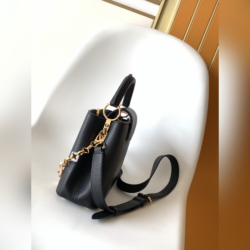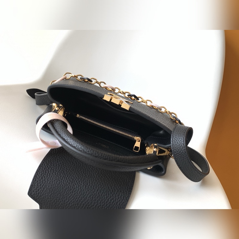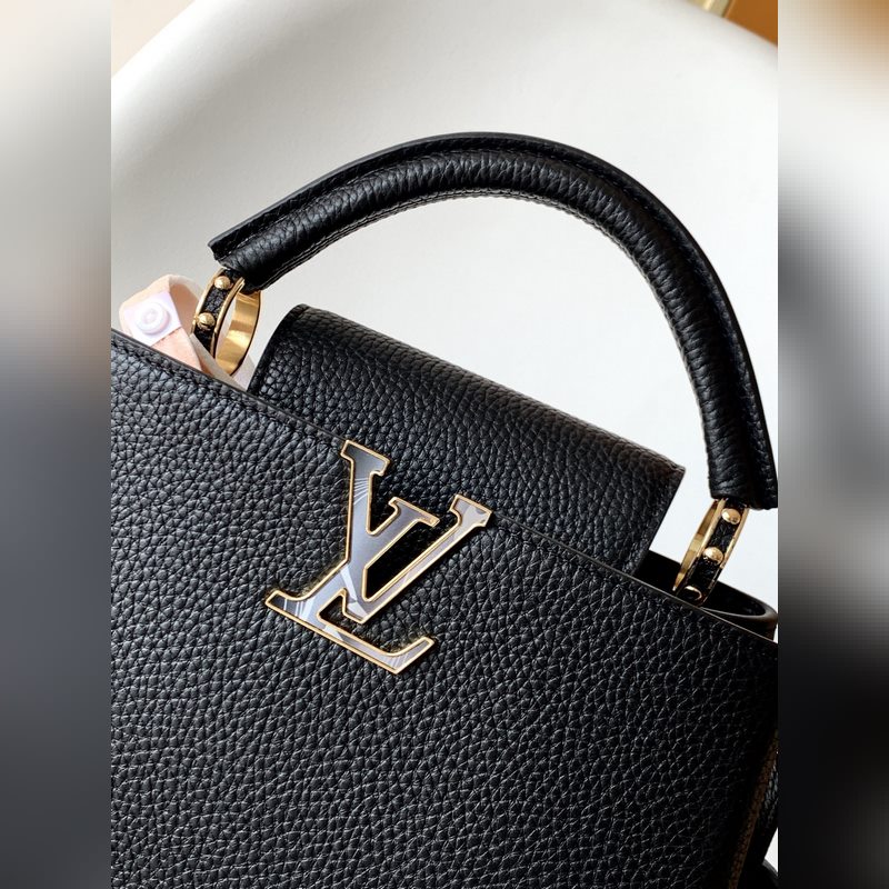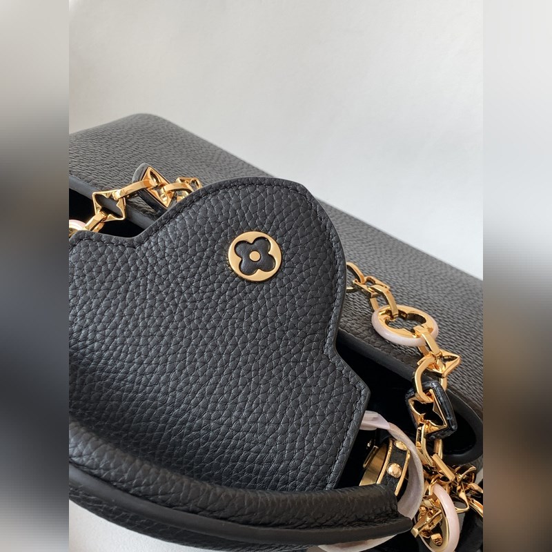 M14381 브라운 M14970 블랙 M14971 네온 블루 M14972 핑크 퍼플 M14393 가로형 베이지 정품 오리지널 다이내믹 163 본 Capucines BB 핸드백은 Harmony 시리즈의 디자인 요소를 차용하여 화려한 체인으로 Monogram 플로럴의 영감을 표현합니다. 타우리용 소가죽 바디에 레진 코팅 LV 로고가 장식되어 있으며 외부 또는 내부로 접을 수 있는 플랩을 열면 다중 포켓이 정돈된 내부 레이어가 드러납니다. 가로형 미백 22.0 x 12.0 x 8.0 cm (길이 x 높이 x 너비) --------- 브라운 블랙 네이비 퍼플 21.0 x 14.0 x 8.0 cm (길이 x 높이 x 너비) 27.0 x 17.3 x 9.0 cm (길이 x 높이 x 너비) Taurillon 소가죽 소가죽 트림 소가죽 안감 수지 및 금속 부품 플랩은 안쪽 또는 바깥쪽에 위치 가능 분할 공간 내부에 포켓 부착 금속 바닥 못 6.1인치 스마트폰 Capucines 소형 지갑 열쇠 립스틱 수납 가능