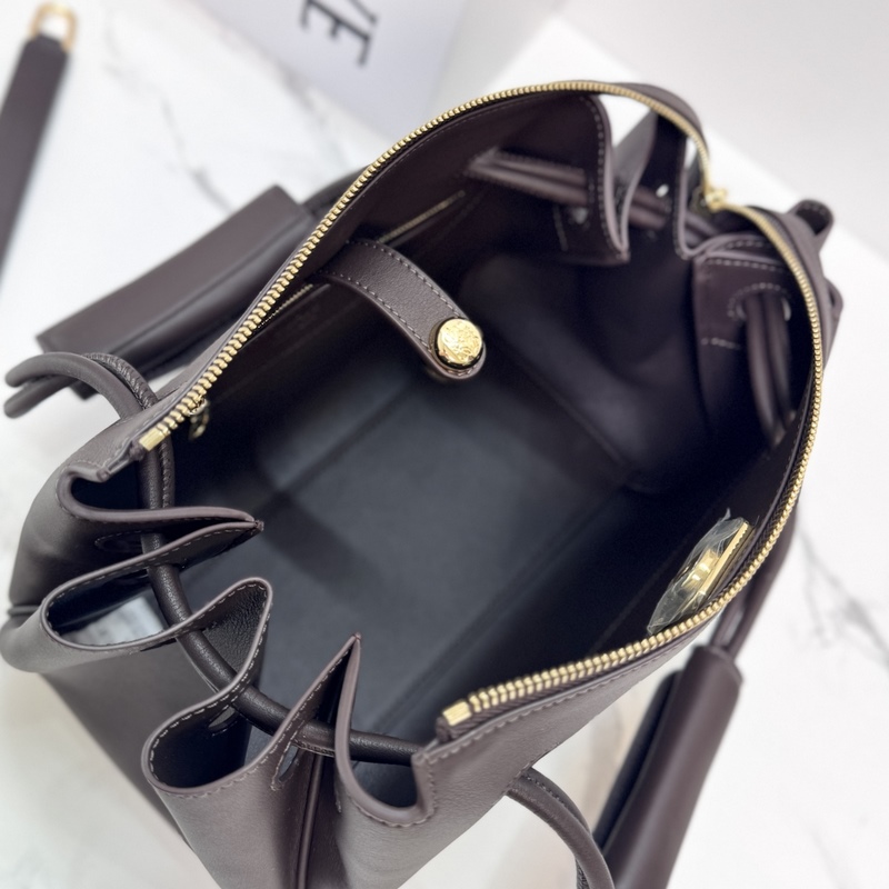 로가 신상 소형 부드러운 소가죽 마드리드 핸드백 Madrid는 부드러운 구조감의 사다리꼴 디자인에 코너 지지대 디테일을 적용했으며 조절 가능한 핸들과 Pebble 자석 버클이 특징입니다. 이 소형 버전은 부드러운 소가죽으로 제작되었습니다. 어깨에 메거나 크로스백 핸드백으로 사용 가능* 조절 가능한 숄더 스트랩 가죽 연장 스트랩 포함 아나그램 페블 자석 버클 지퍼 개폐식 지퍼 내부 포켓 1개 내부 카드 수납공간 1개 Anagram Pebble 금속 발판 나파 양가죽 안감. 사이즈: 23.5*10*19cm 모델: 012452