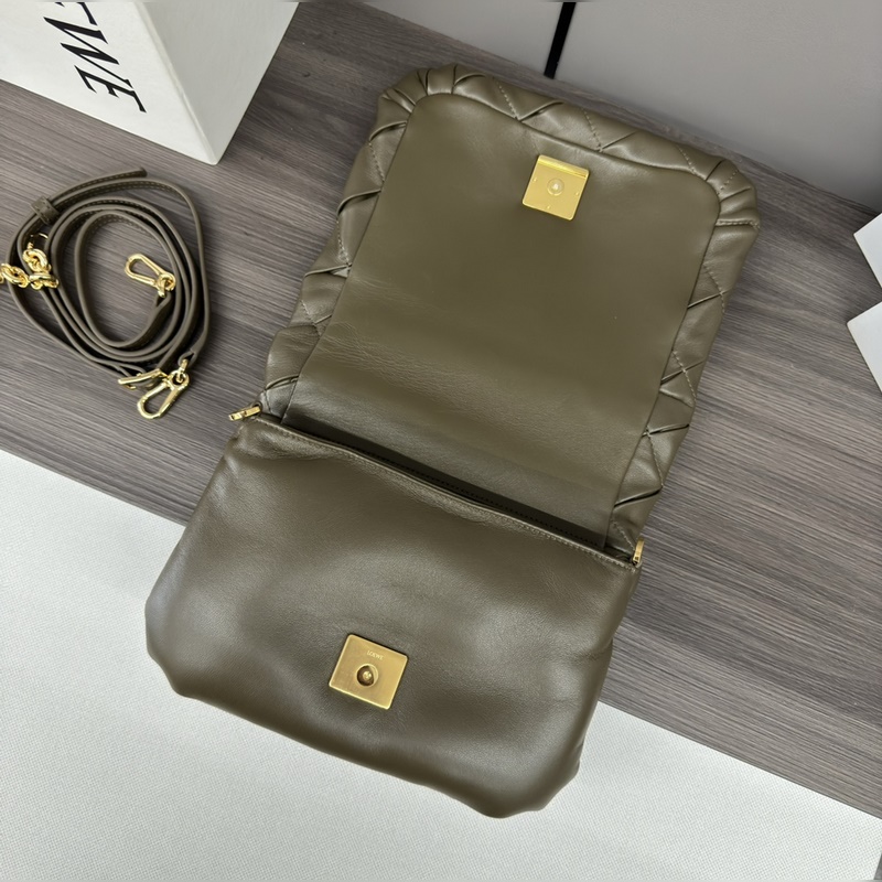 LOEWE 주름 장식 반짝이는 나파 양가죽 퍼퍼 고야 핸드백은 고야의