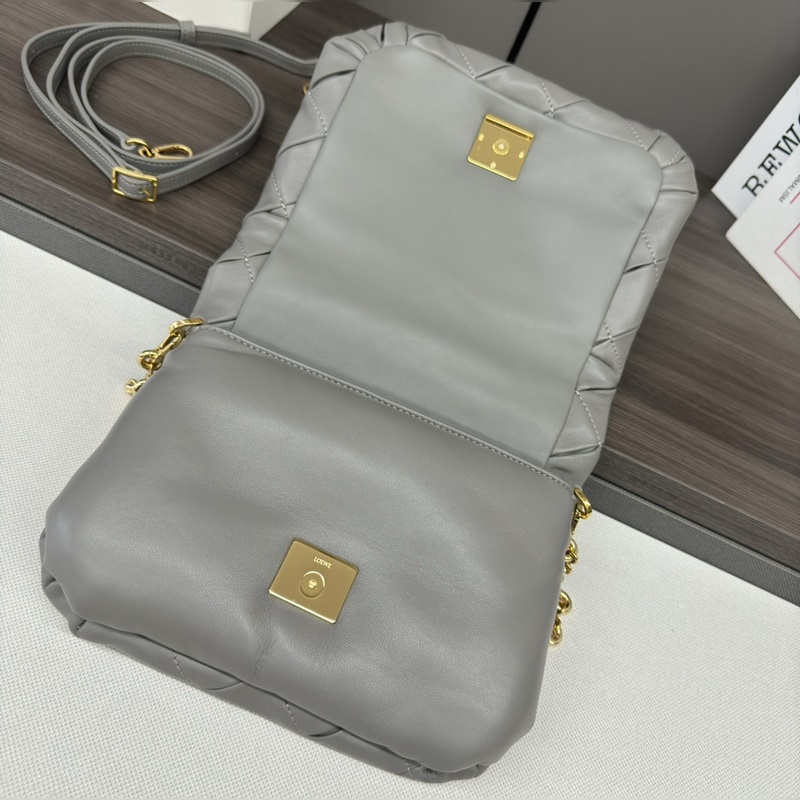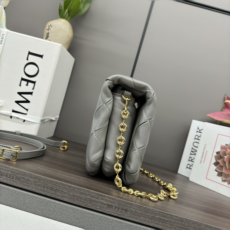 LOEWE 주름 장식 반짝이는 나파 양가죽 퍼퍼 고야 핸드백은 고야의