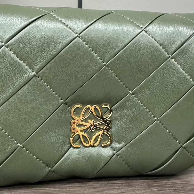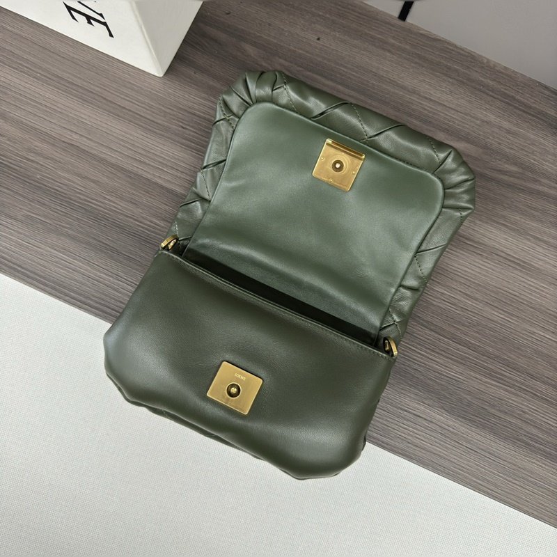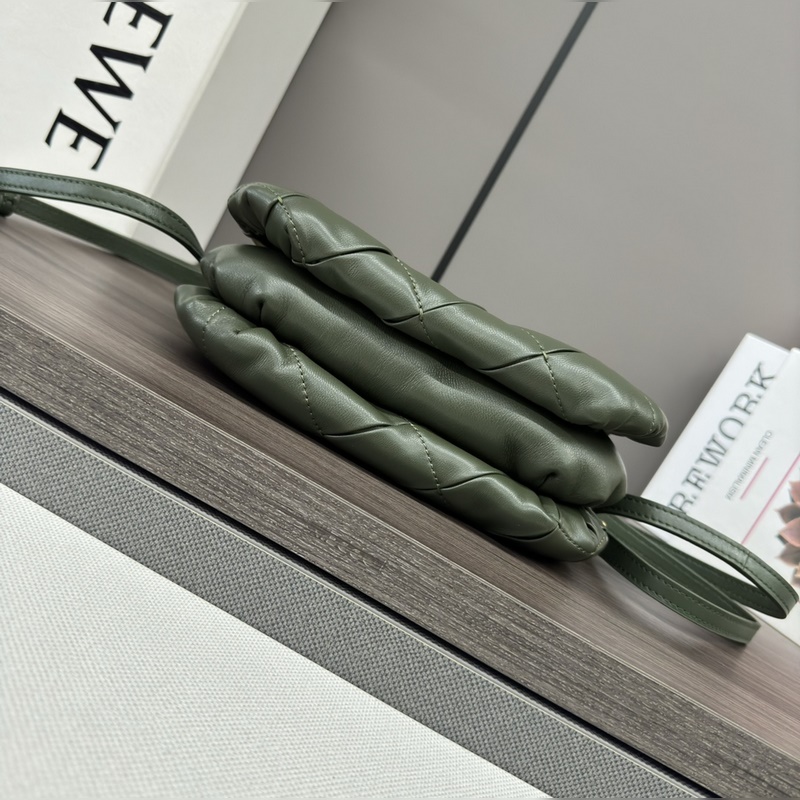 LOEWE 주름 장식 반짝이는 나파 가죽 Puffer Goya 핸드백