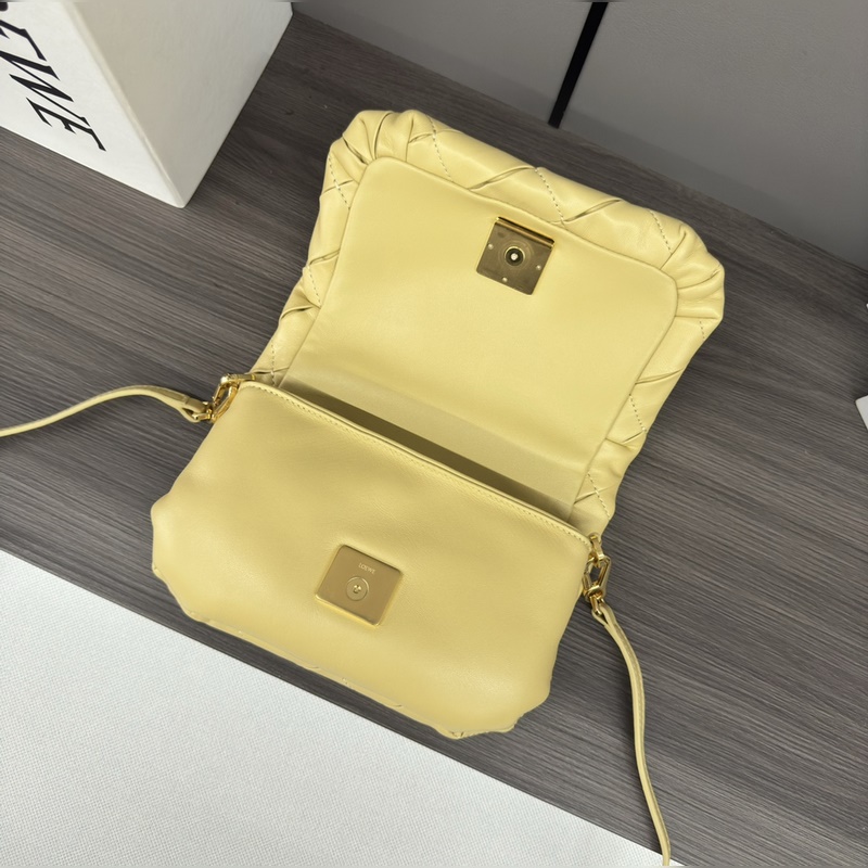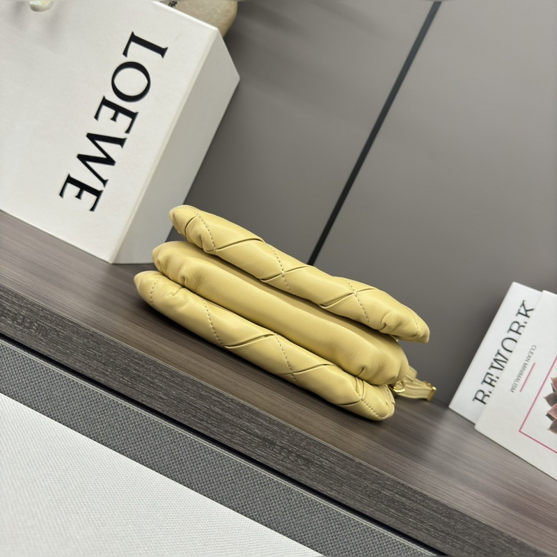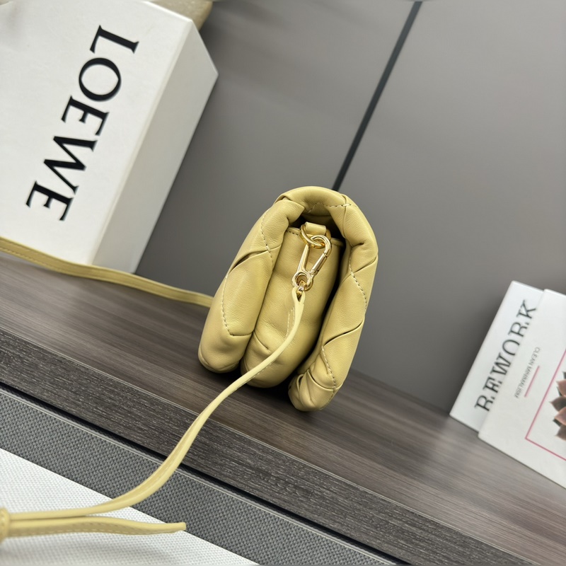 LOEWE 주름 장식 반짝이는 나파 가죽 Puffer Goya 핸드백
