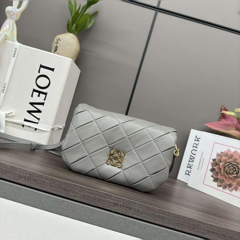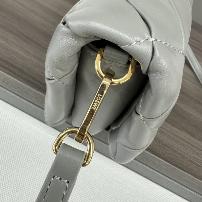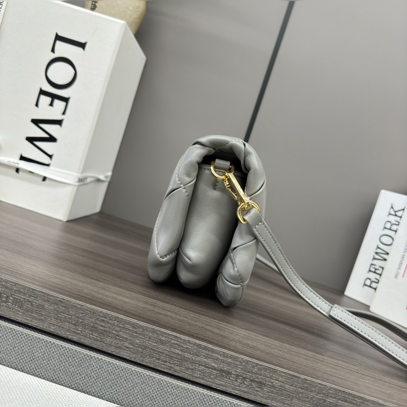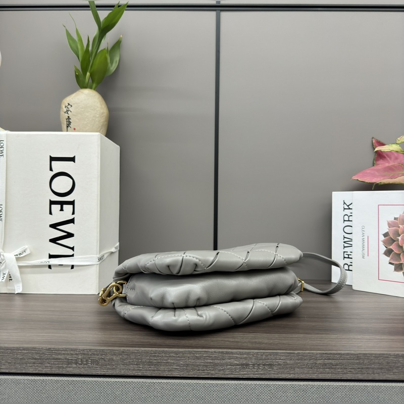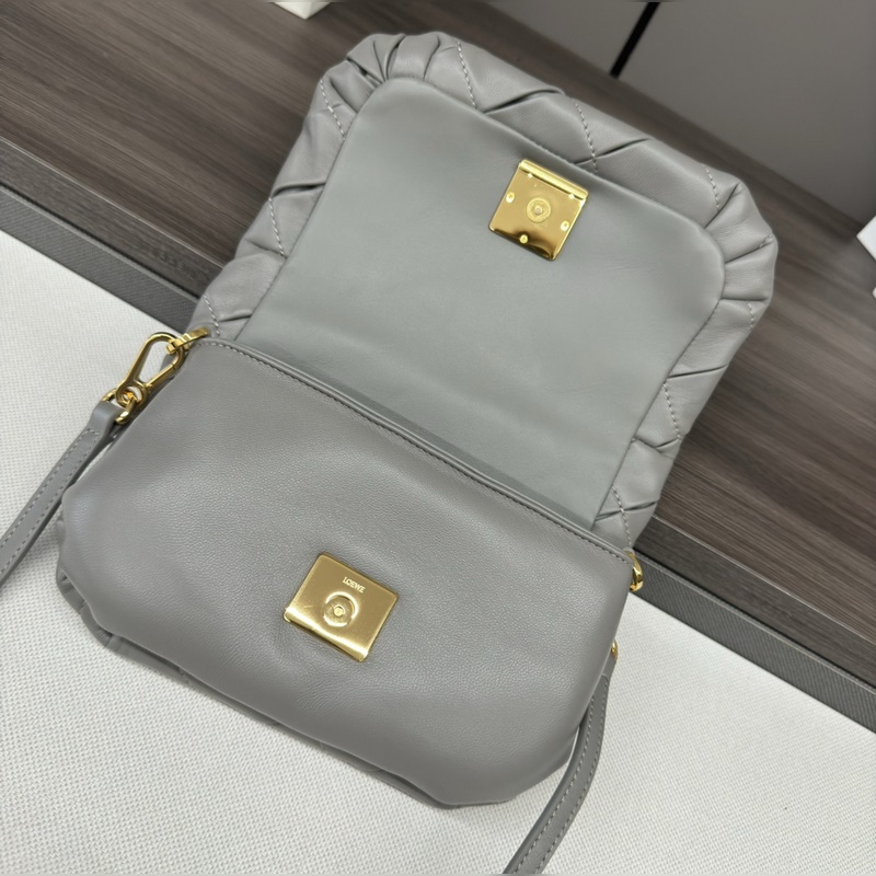 LOEWE 주름 장식 반짝이는 나파 가죽 Puffer Goya 핸드백