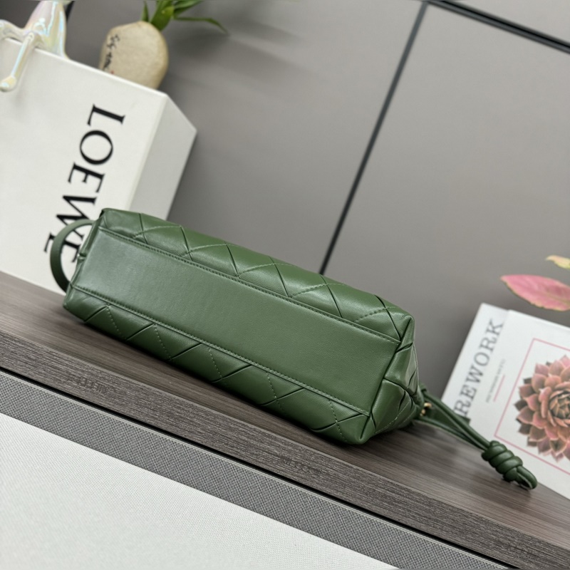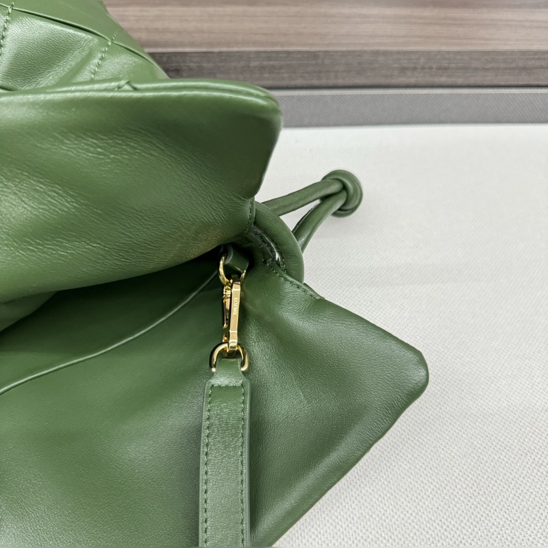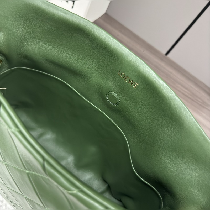 LOEWE 신상 미디엄 플라멩코 나파 가죽 클러치 백 끈을 당겨 조이