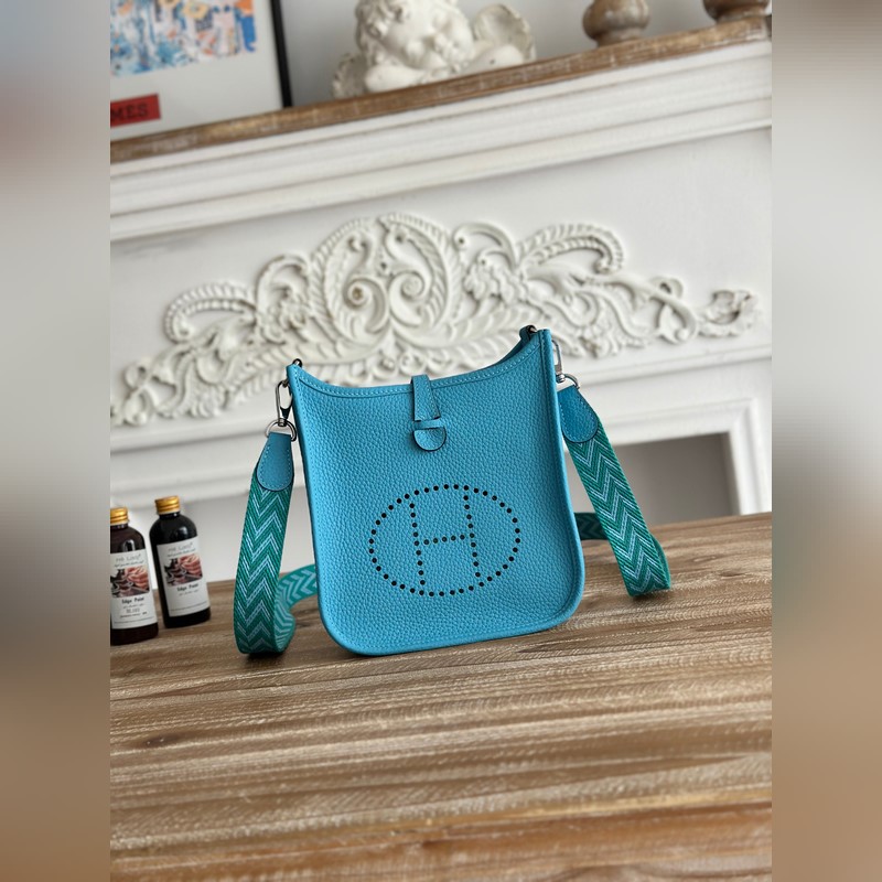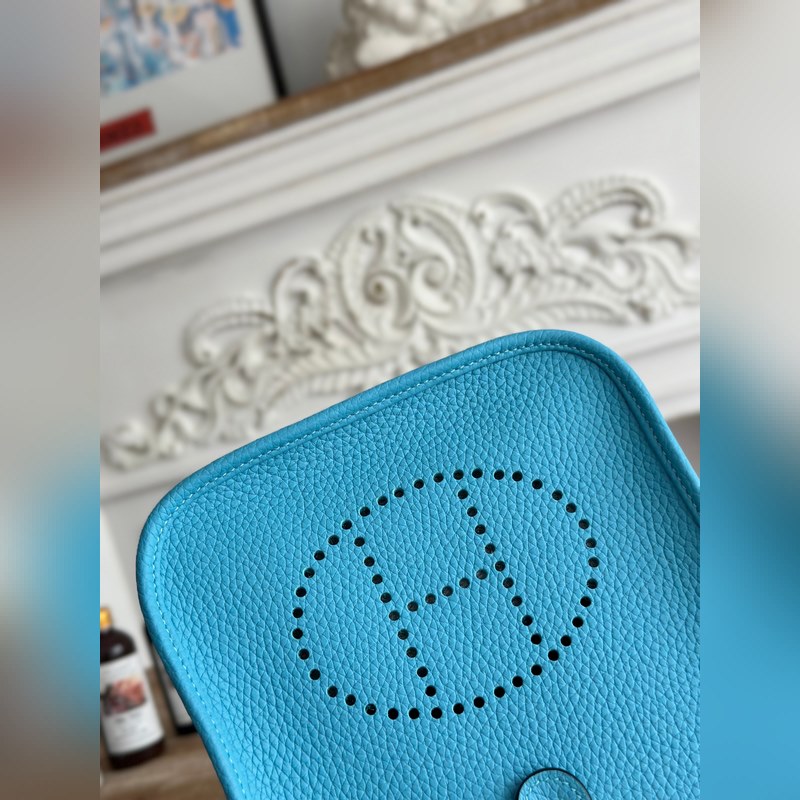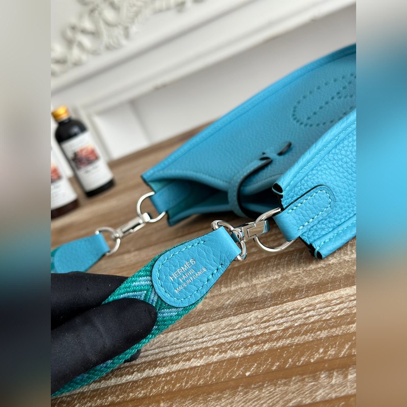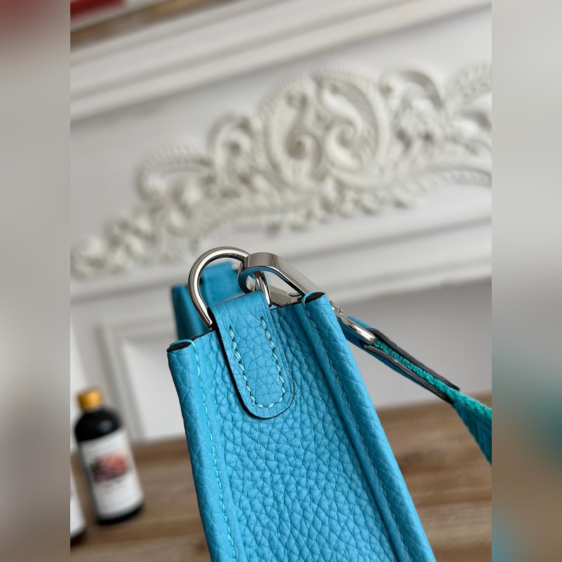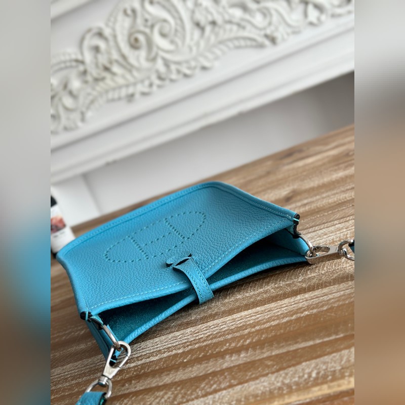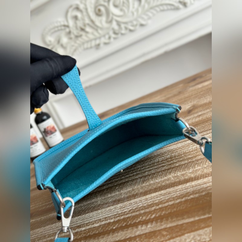 미니 이브린 반 수제 + 왁스 실 자체 제작 숄더 스트랩 + TC 소가죽 색상: 북방 블루 금은색 버클 모두 있음 미니 사이즈: 17cm
