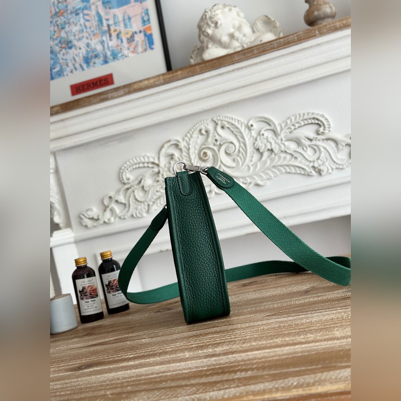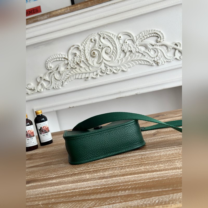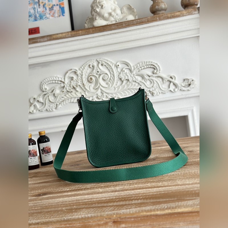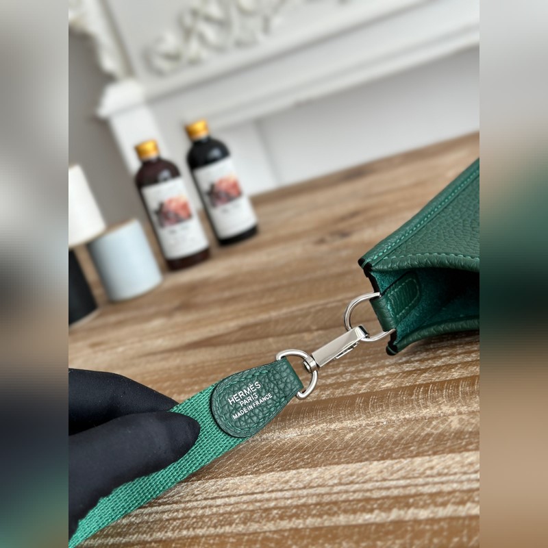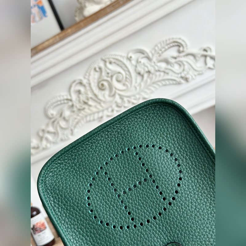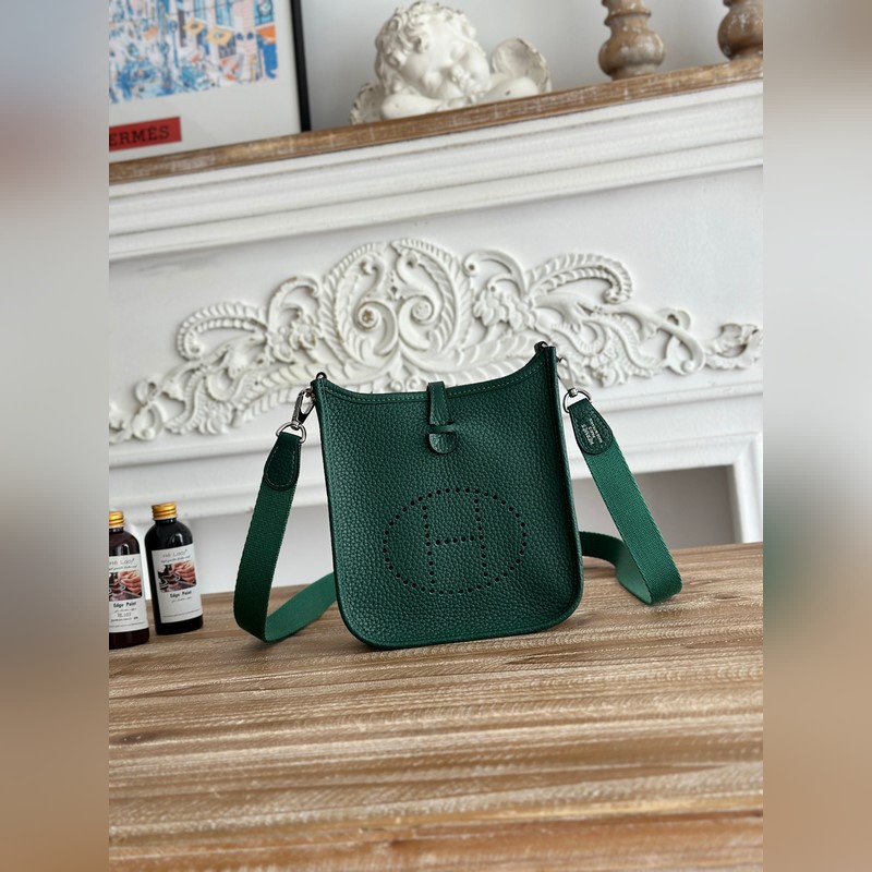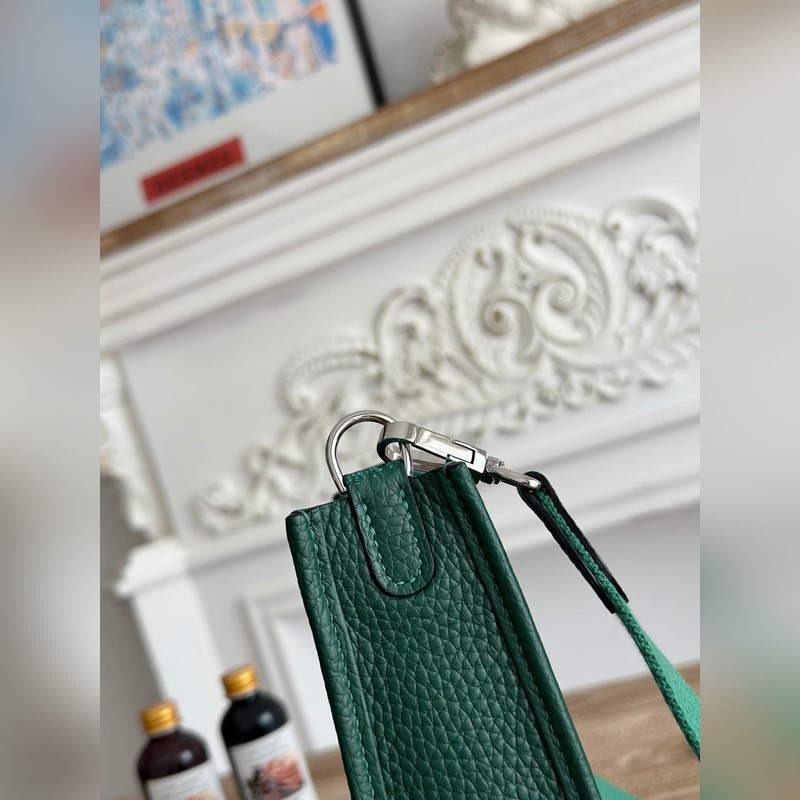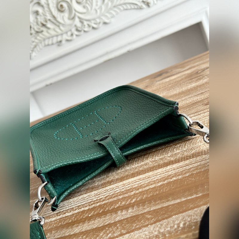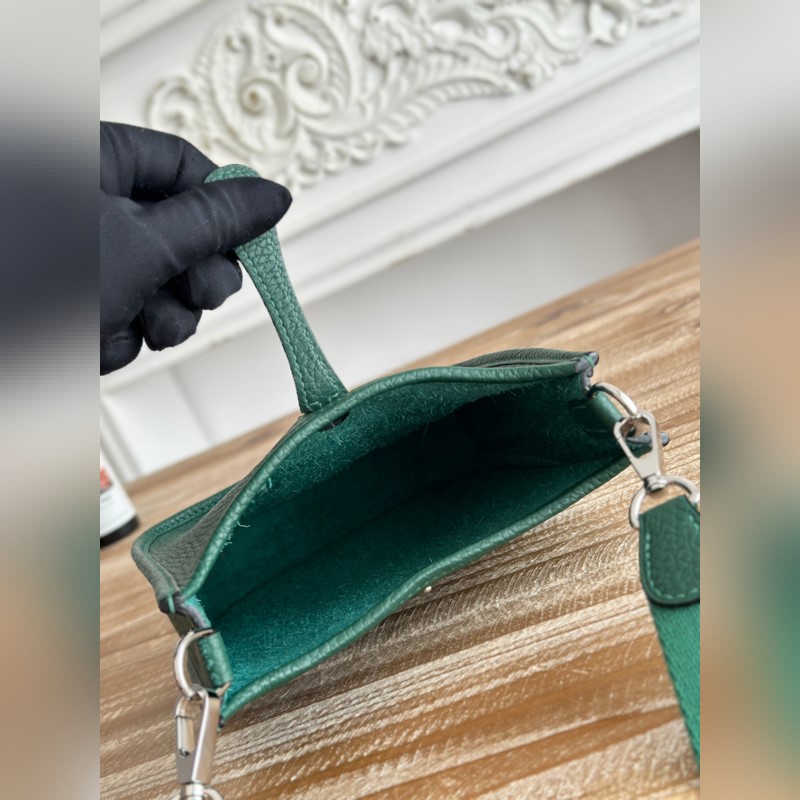 미니 이브린 반 수제 + 왁스 실 자체 제작 숄더 스트랩 + TC 소가죽 색상: 공작새 녹색 금은색 버클 모두 있음 미니 사이즈: 17cm