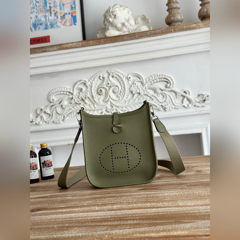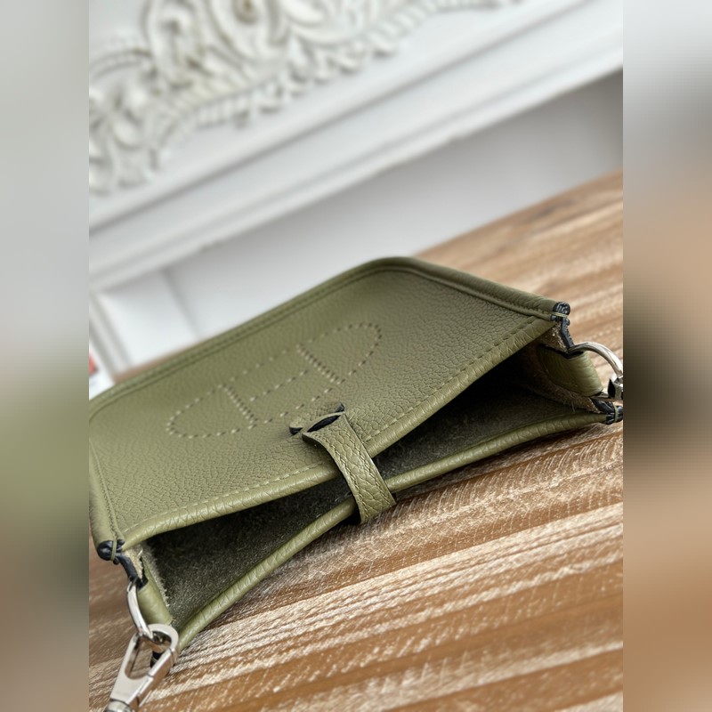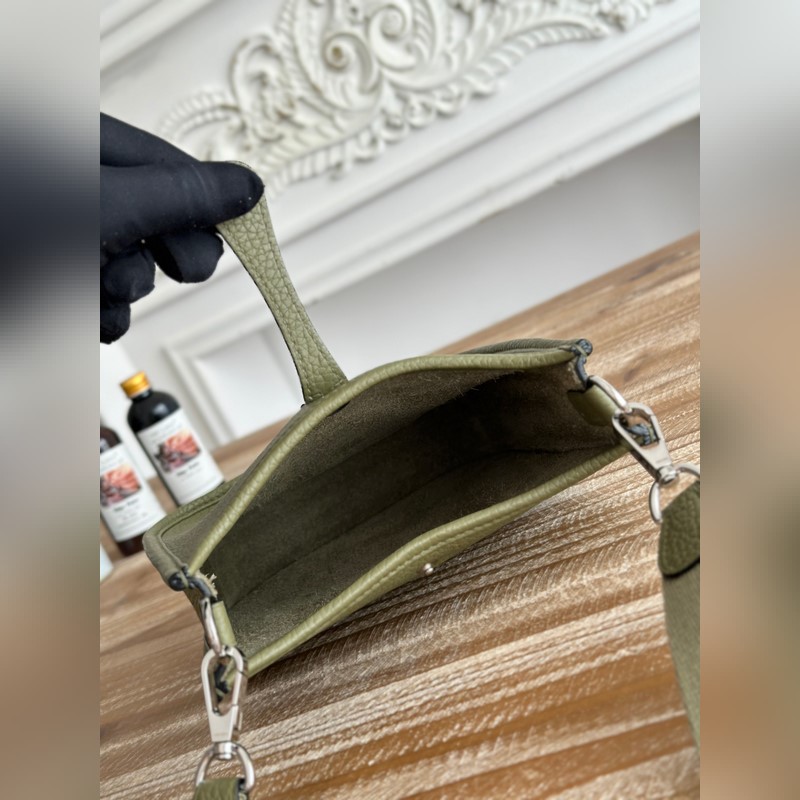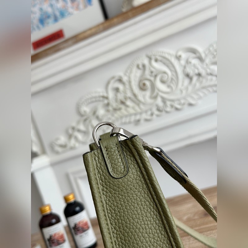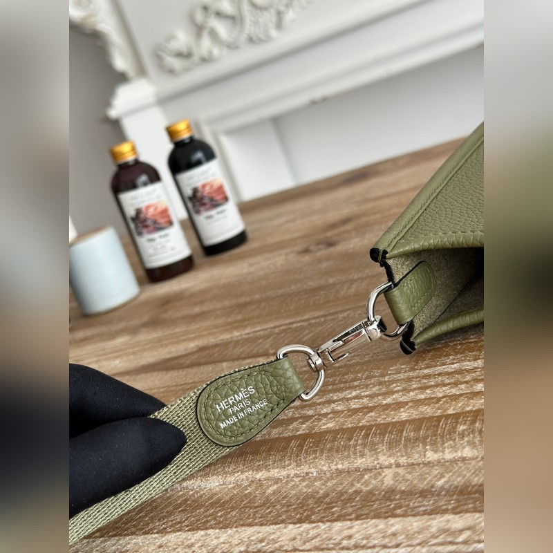 미니 이브린 반 수제 + 왁스 실 자체 제작 숄더 스트랩 + TC 소가죽 색상: 세이지 그린 금은색 버클 모두 있음 미니 사이즈: 17cm