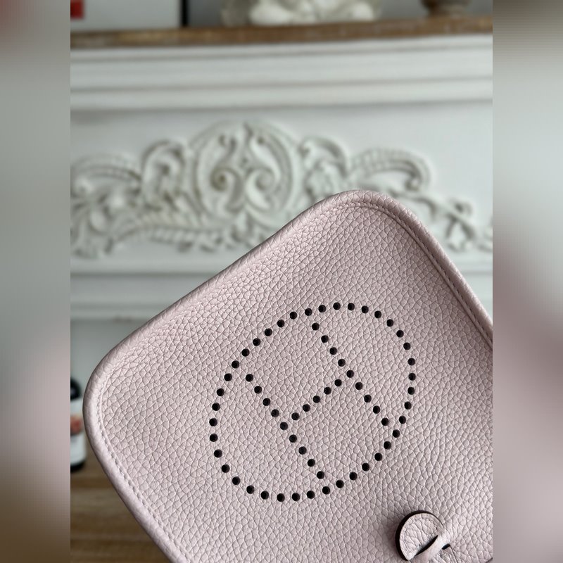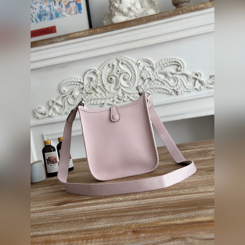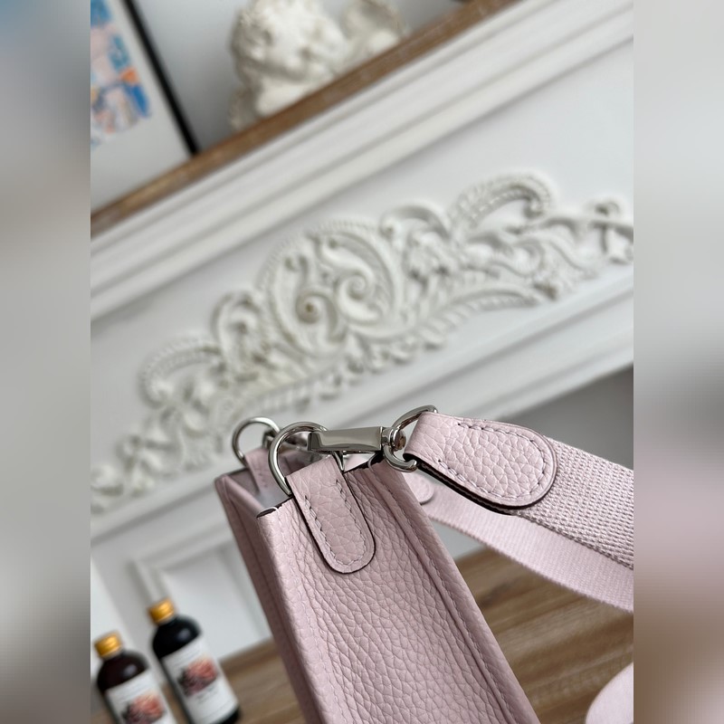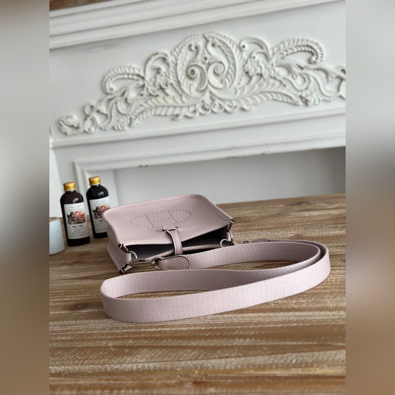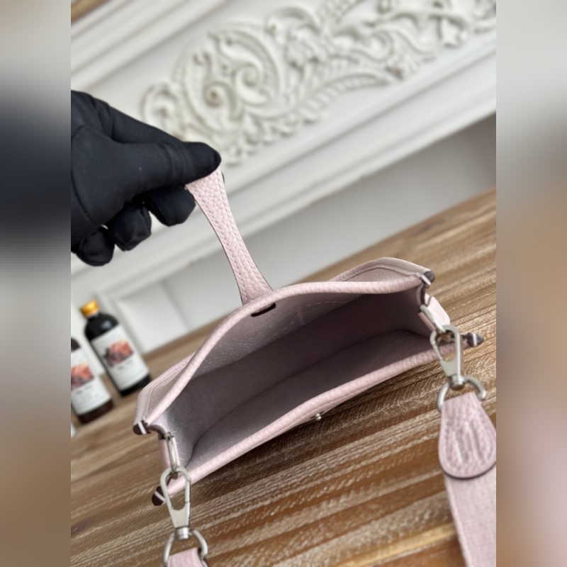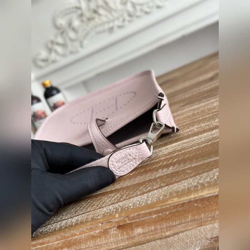 미니 이브린 반 수제 + 왁스 실 자체 제작 숄더 스트랩 + TC 소가죽 색상: 몽환 핑크 금은색 버클 모두 있음 미니 사이즈: 17cm
