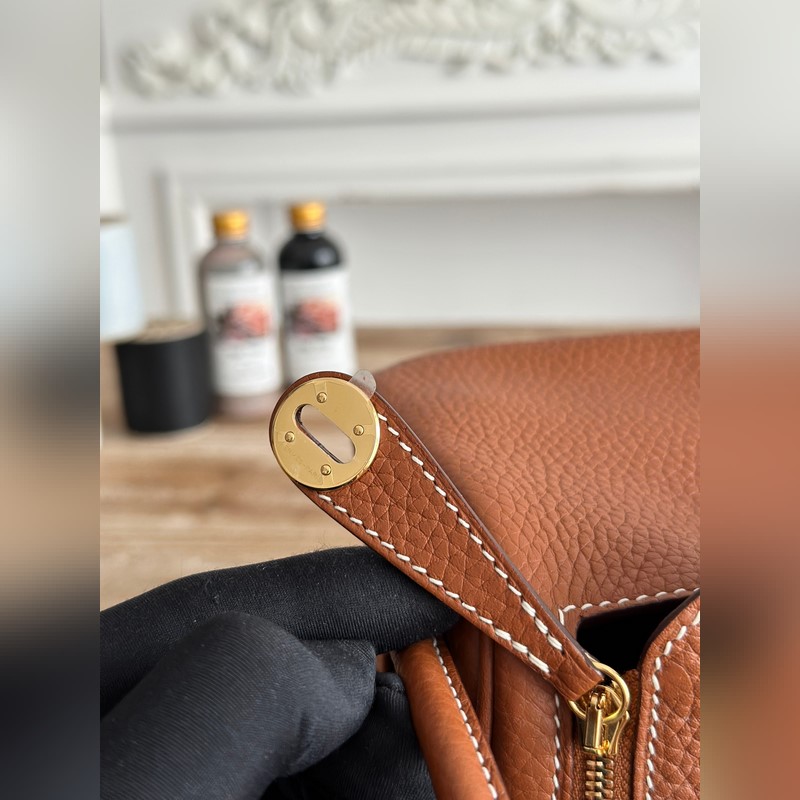 린디 19cm 색상: 골드 브라운 골드 버클 TC 가죽 밀랍 실 반 수제 봉제 린디19는 린디 가방의 모든 디테일을 완벽히 재현한 디자인으로 사이드 포켓 지퍼 등 모든 요소가 클래식한 디자인을 유지합니다. 이 귀여운 아이가 얼마나 많은 사람들의 소녀심을 강타했는지