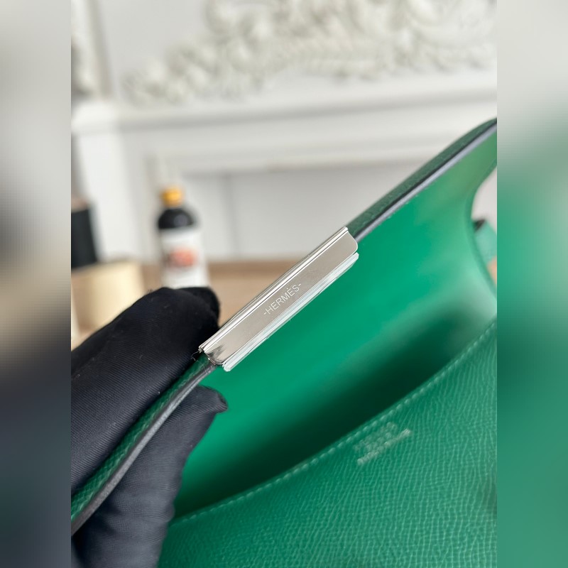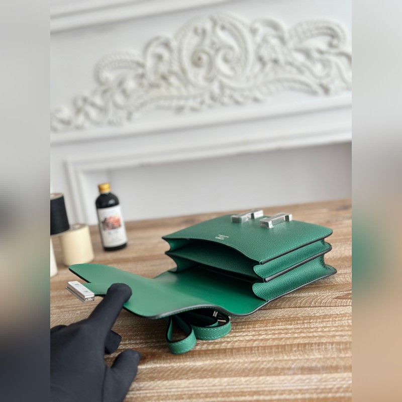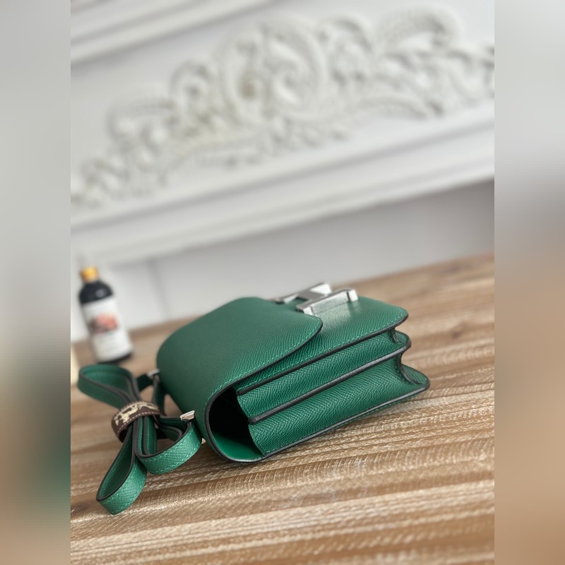 캉캉 스튜어디스 가방 색상: 공작새 녹색 콘스탄스 19cm 엡솜 손바닥 무늬 송아지 가죽 반 마감 왁스 실 봉제