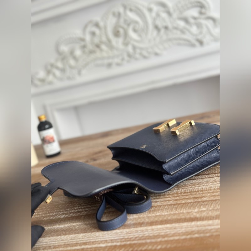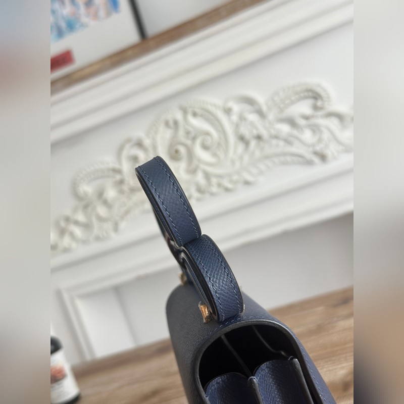강강 스튜어디스 가방 색상: 보석 블루 콘스탄스 19cm 엡솜 손바닥 무늬 송아지 가죽 오토바이 반 수제 왁스 실 봉제