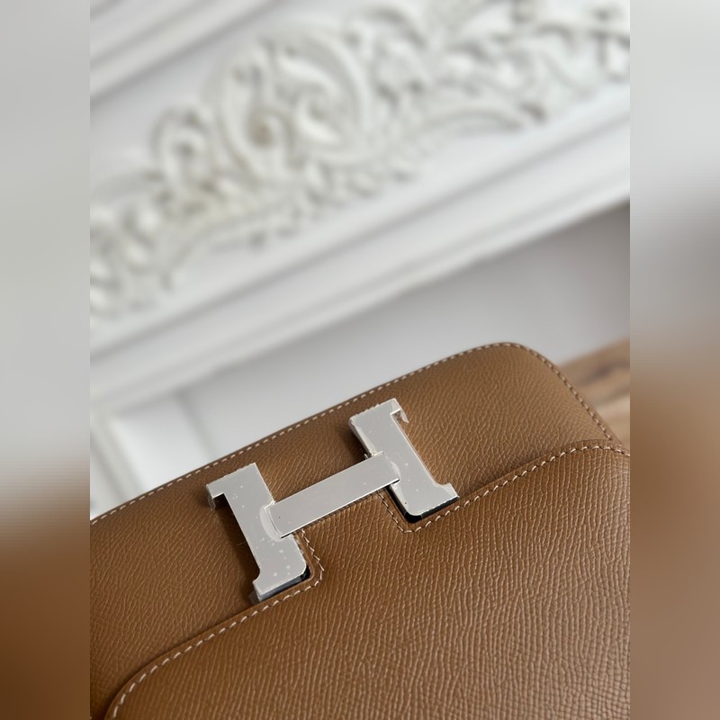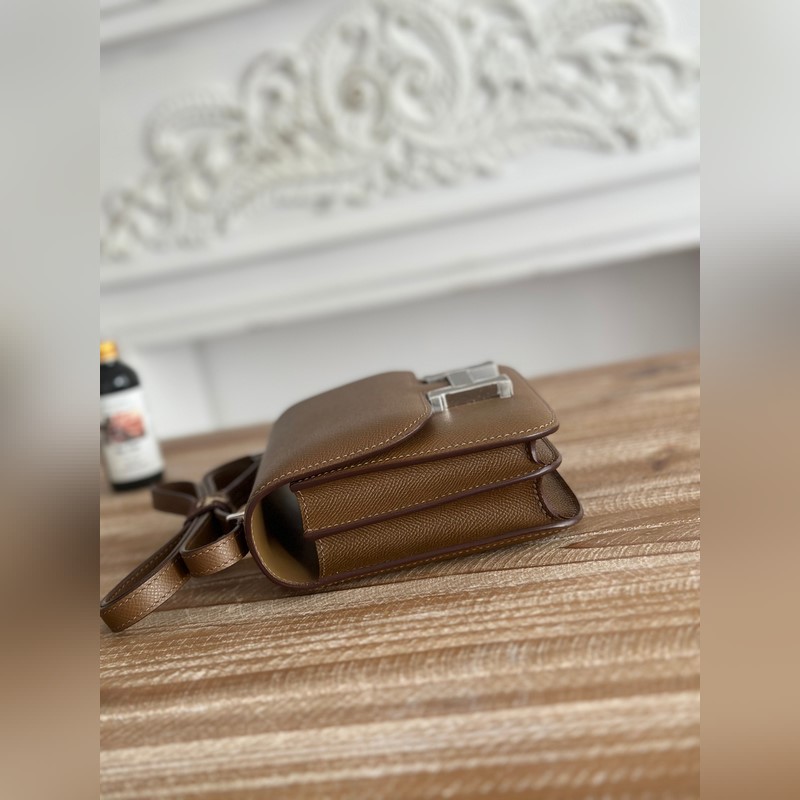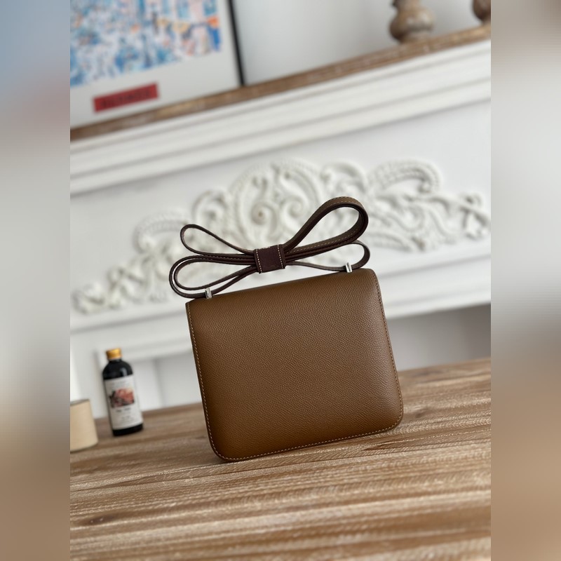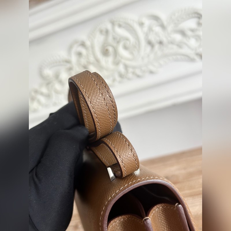 강강 스튜어디스 가방 색상: 골드 브라운 콘스탄스 19cm 엡솜 손바닥 무늬 송아지 가죽 오토바이 반 수제 왁스 실 봉제