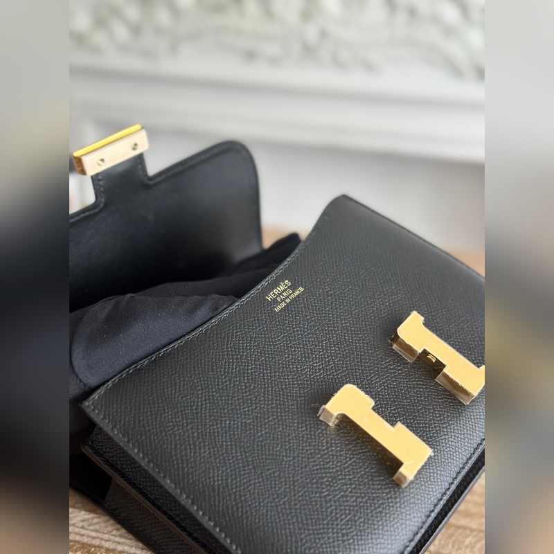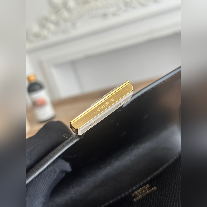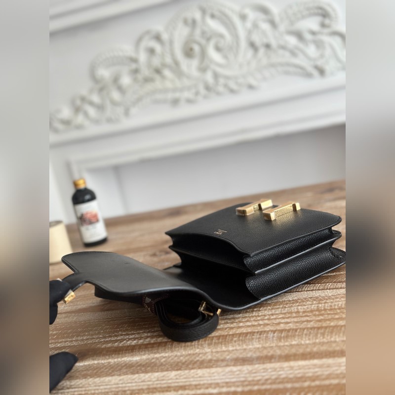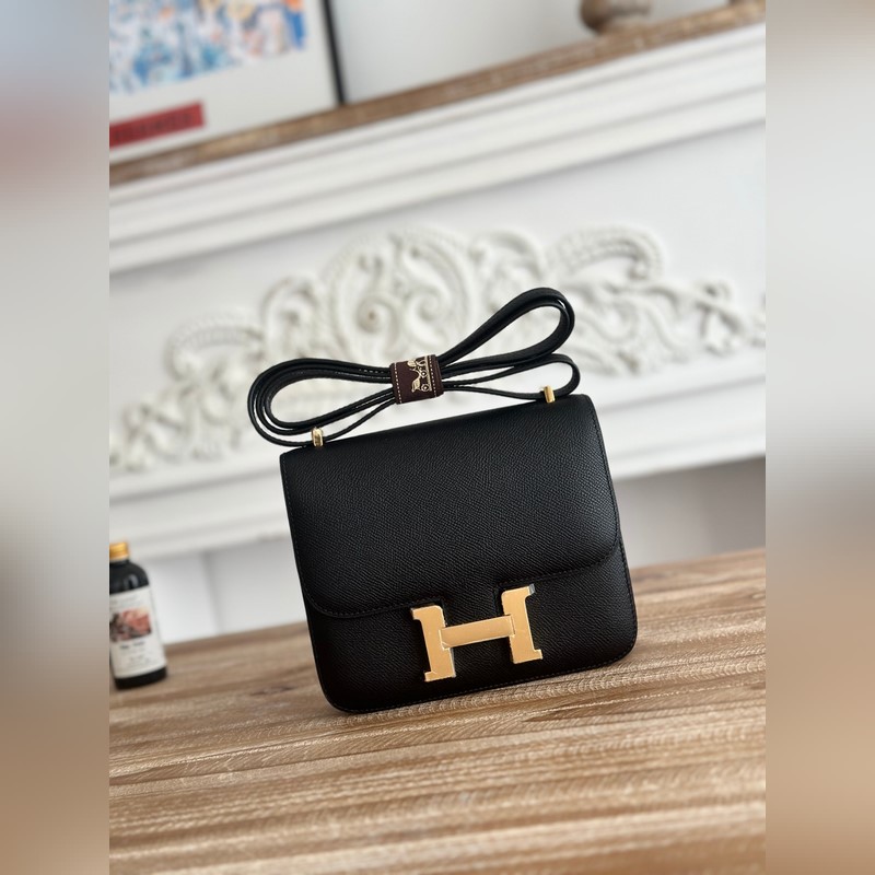 강강 스튜어디스 가방 색상: 블랙 콘스탄스 19cm epsom 손바닥 무늬 송아지 가죽 오토바이 반 수제 왁스 실 봉제