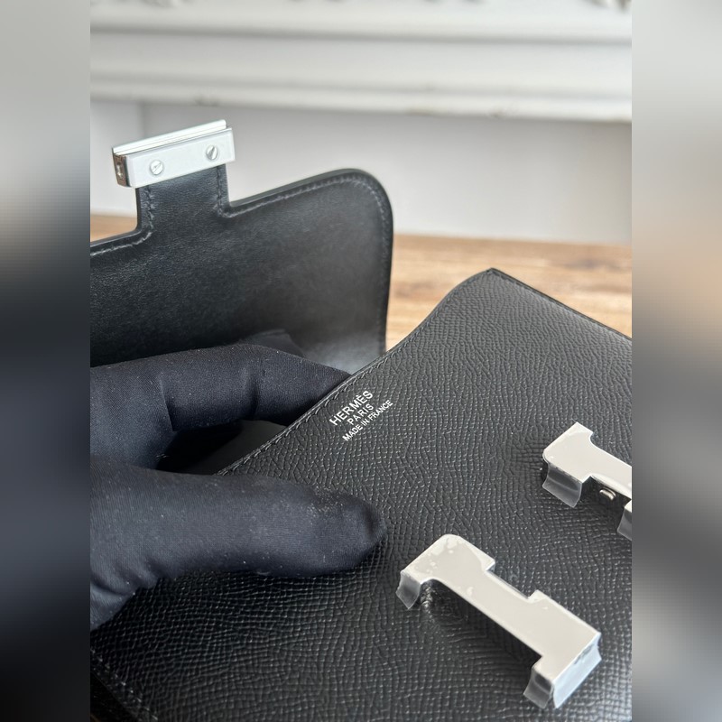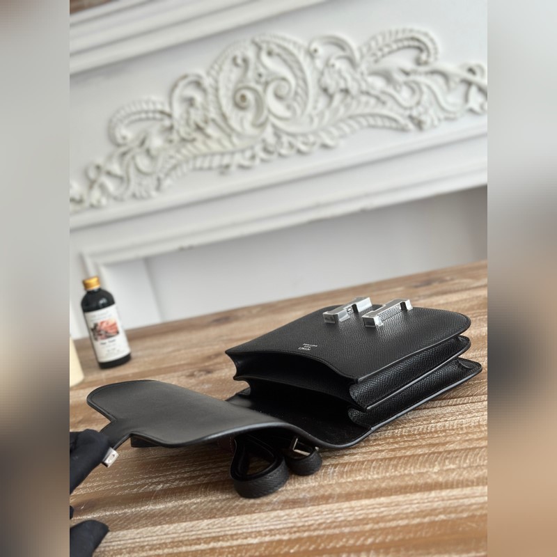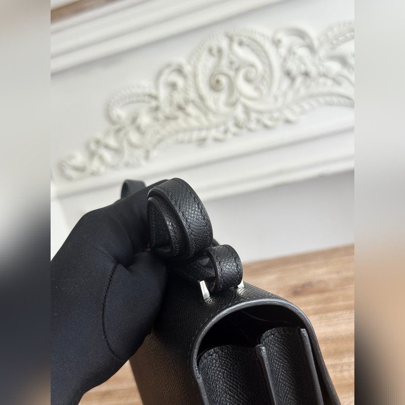 강강 스튜어디스 가방 색상: 블랙 콘스탄스 19cm epsom 손바닥 무늬 송아지 가죽 오토바이 반 수제 왁스 실 봉제