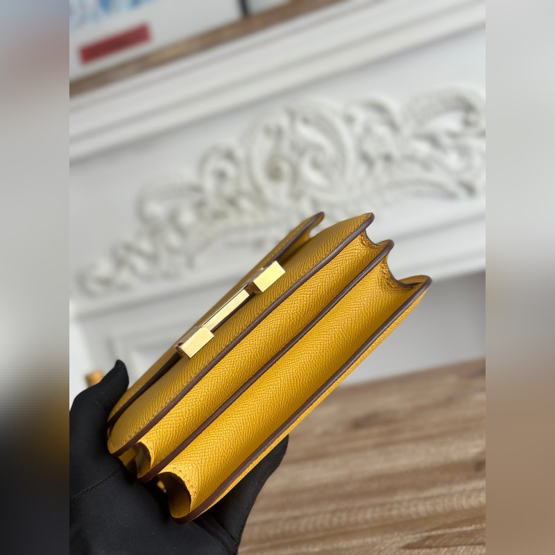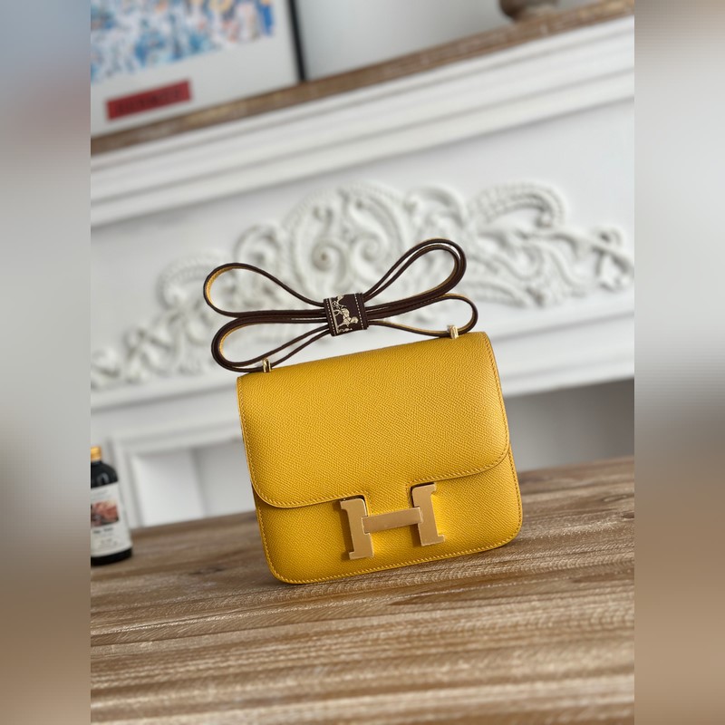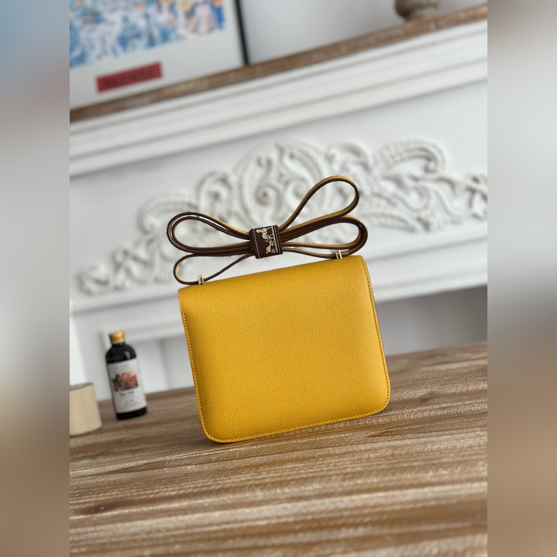 캉캉 스튜어디스 가방 색상: 호박색 콘스탄스 19cm epsom 손바닥 무늬 송아지 가죽 오토바이 반 수제 왁스 실 봉제