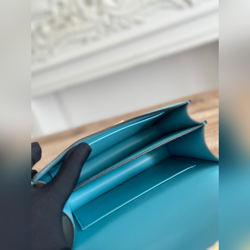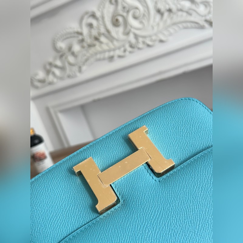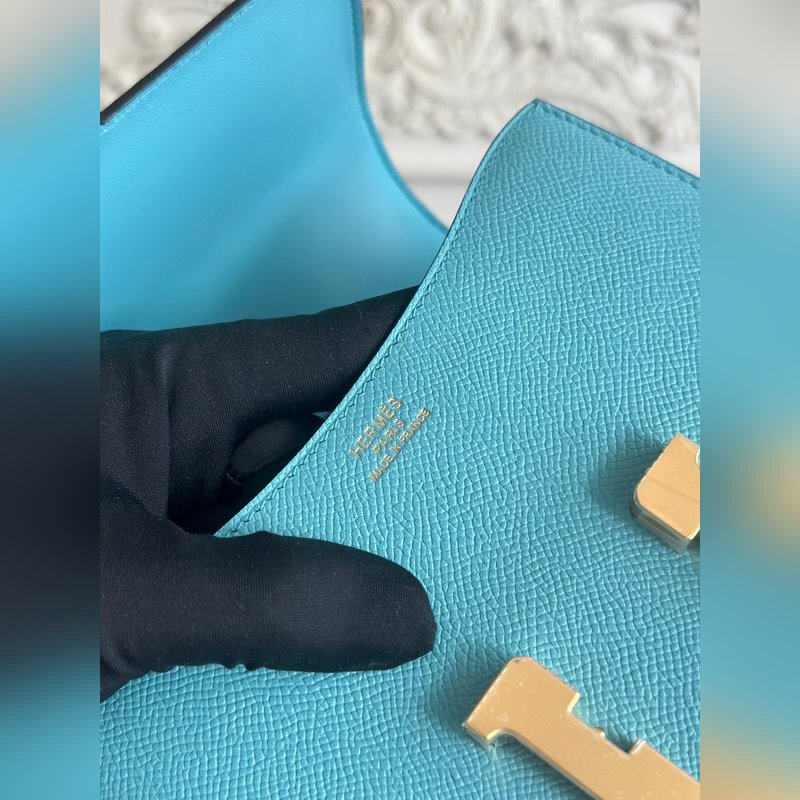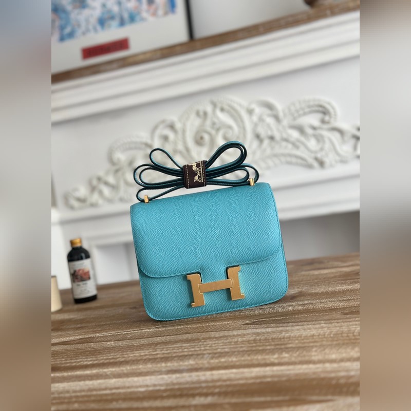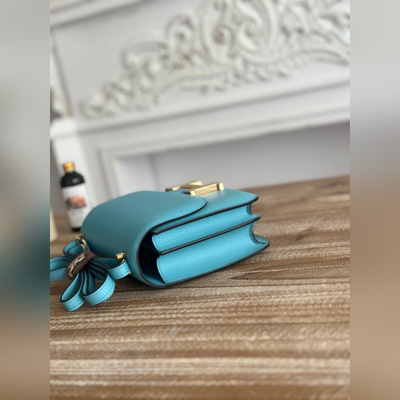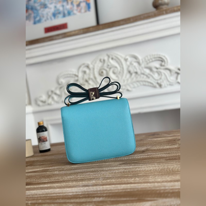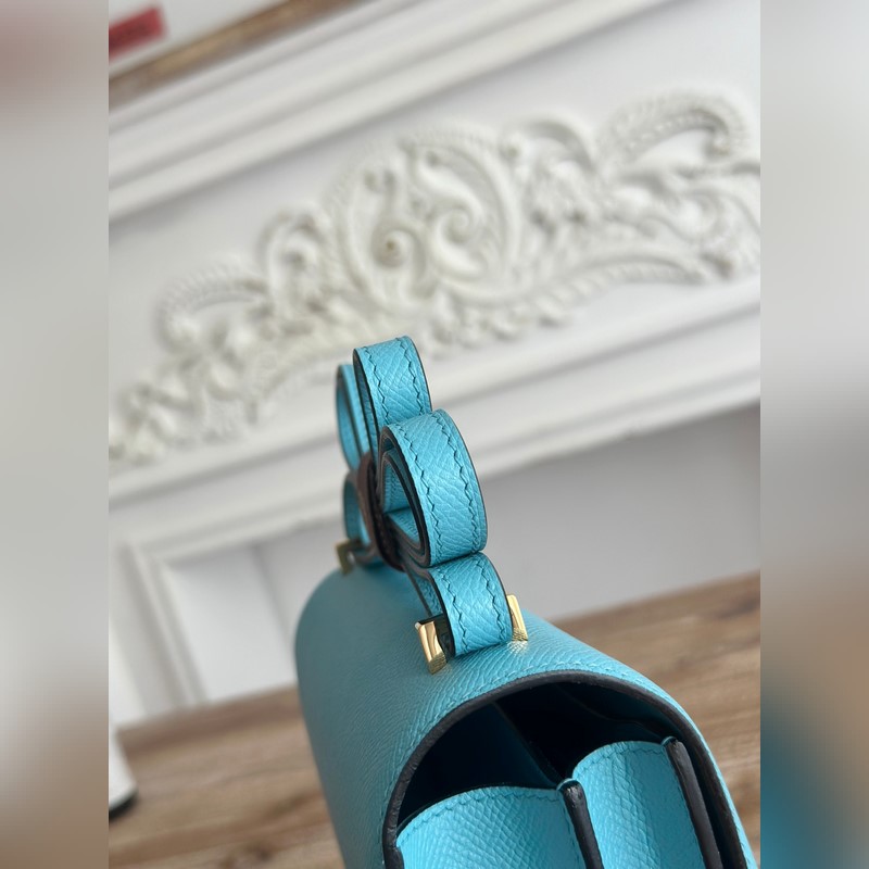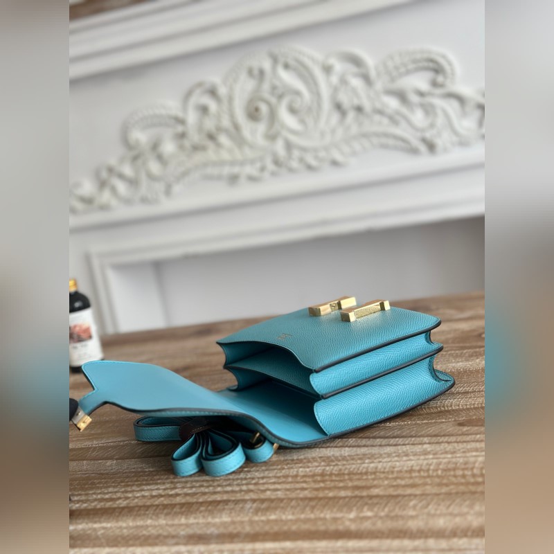 강강 스튜어디스 가방 색상: 북방 블루 콘스탄스 19cm 엡솜 손바닥 무늬 송아지 가죽 오토바이 반 수제 왁스 실 봉제