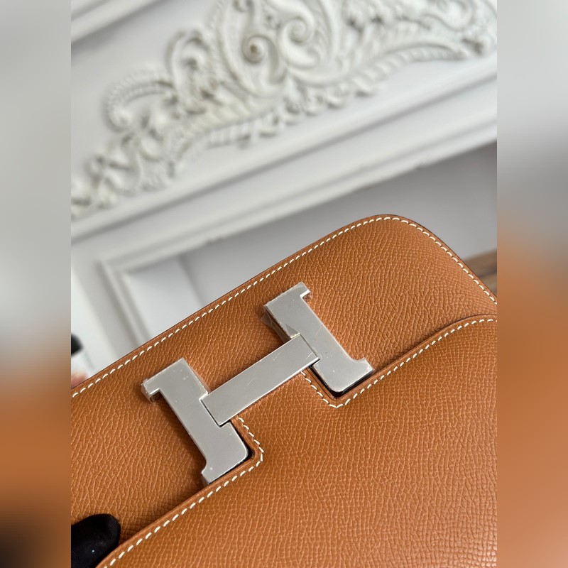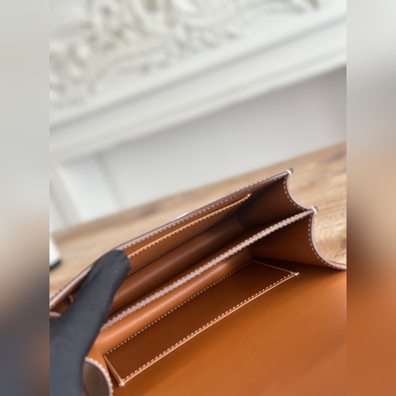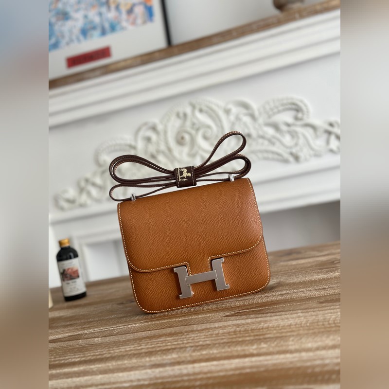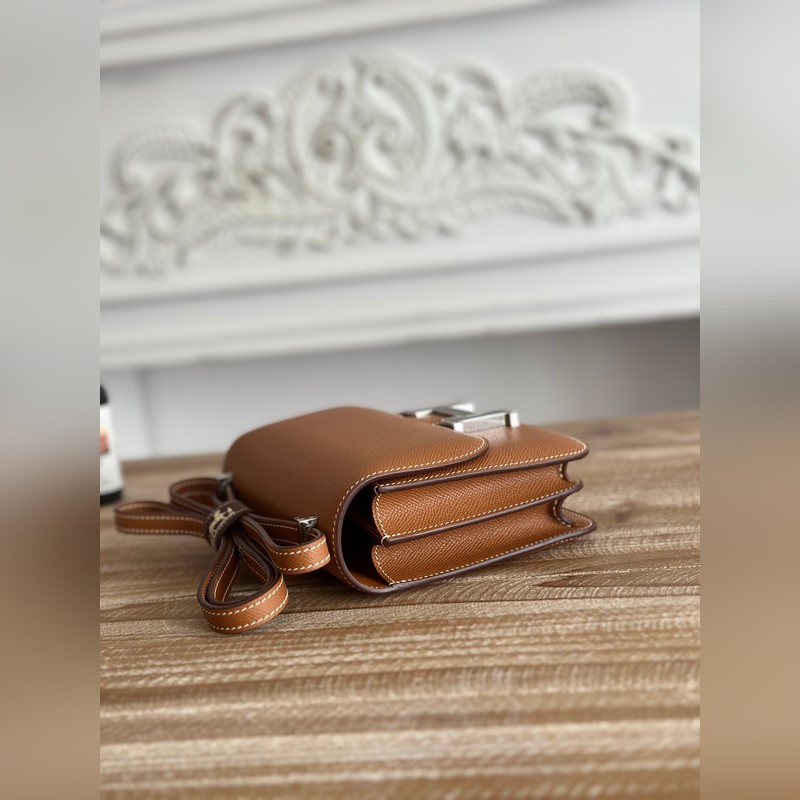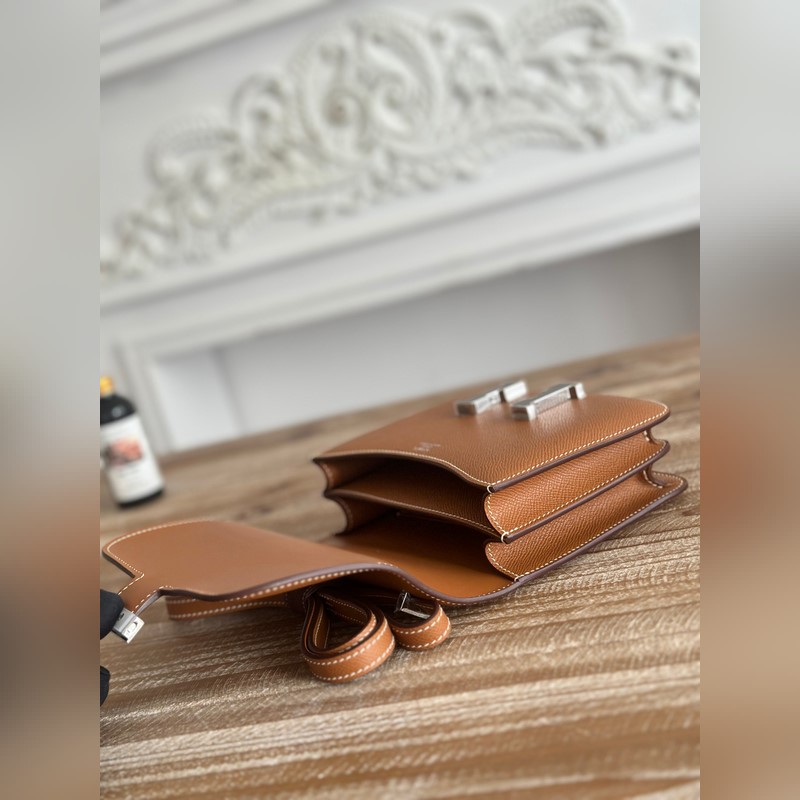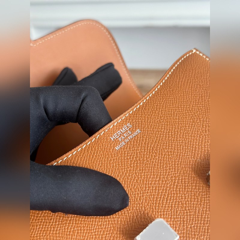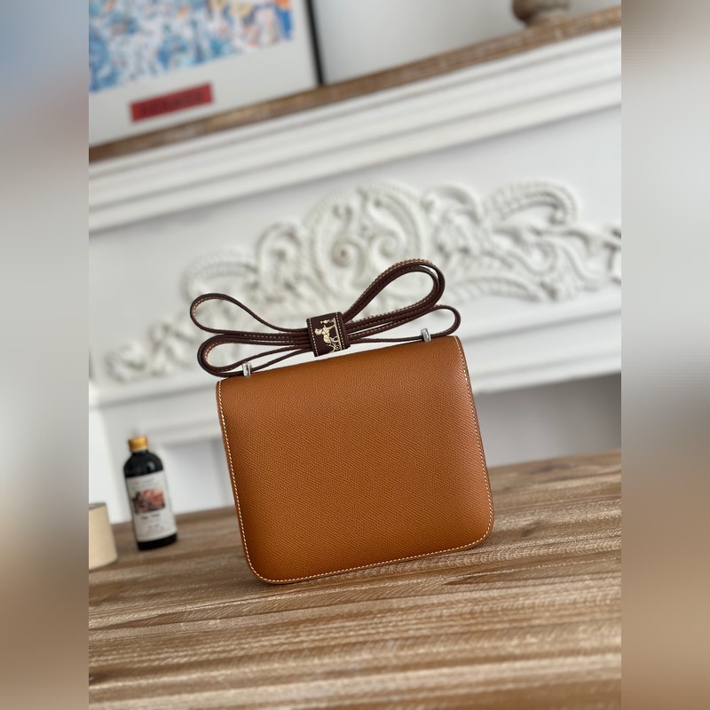 강강 스튜어디스 가방 색상: 골드 브라운 콘스탄스 19cm 엡솜 손바닥 무늬 송아지 가죽 오토바이 반 수제 왁스 실 봉제