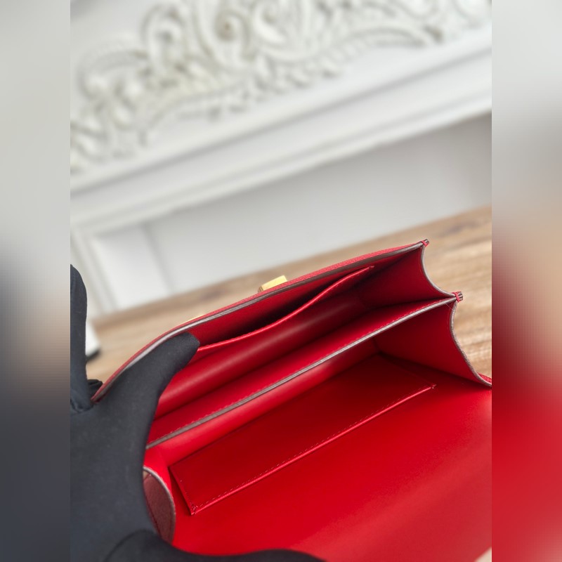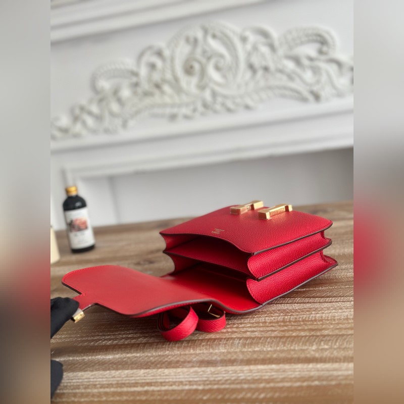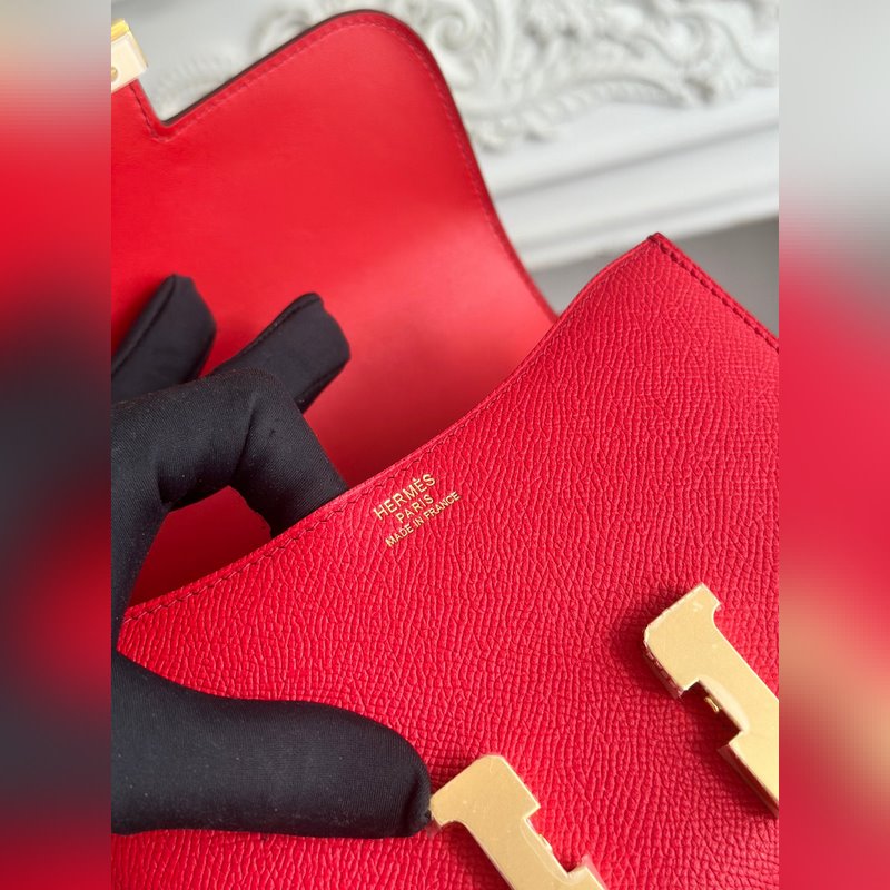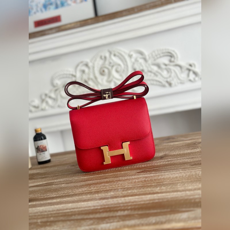 강강 스튜어디스 가방 색상: 진홍색 콘스탄스 19cm epsom 손바닥 무늬 송아지 가죽 오토바이 반 수제 왁스 실 봉제