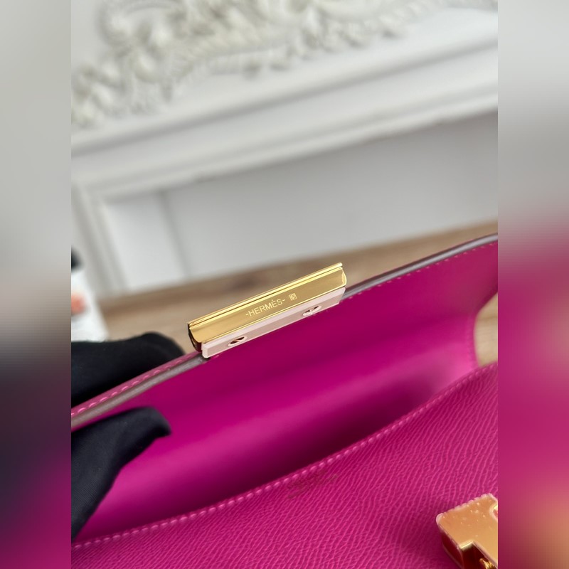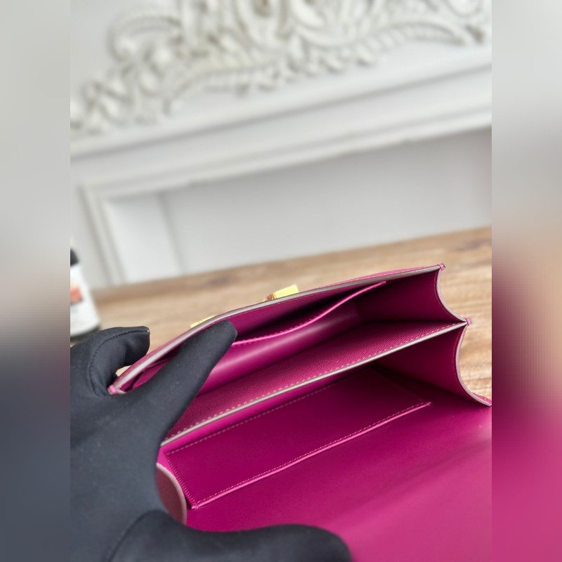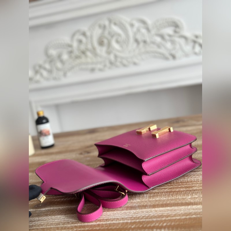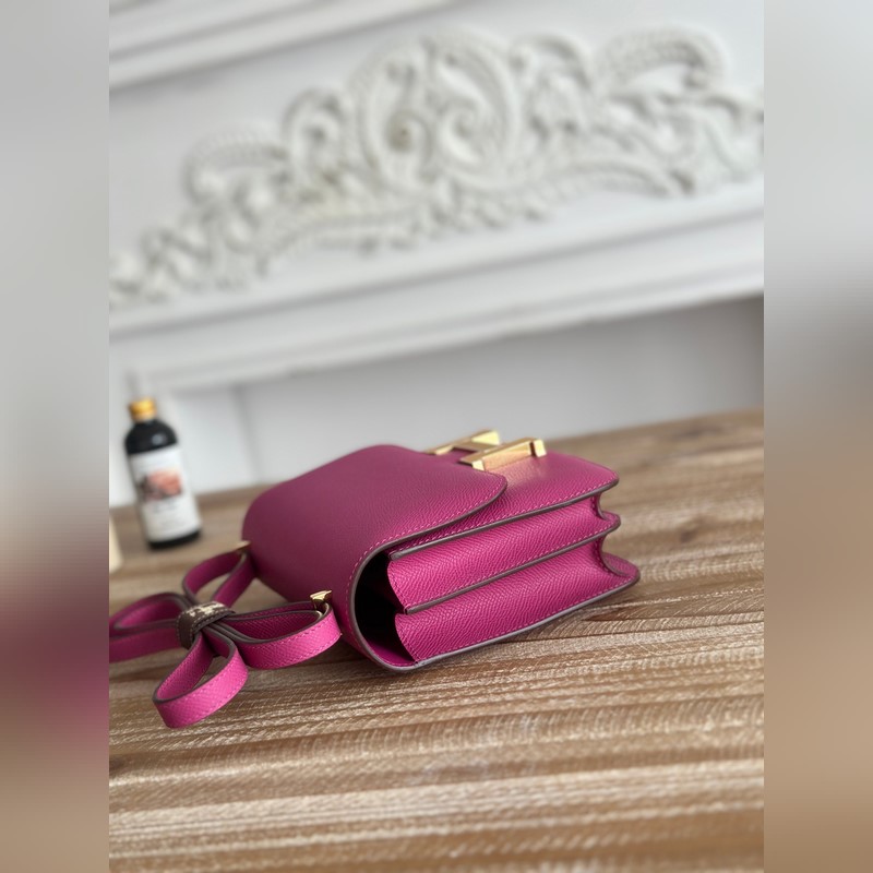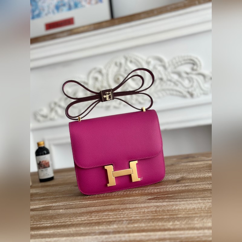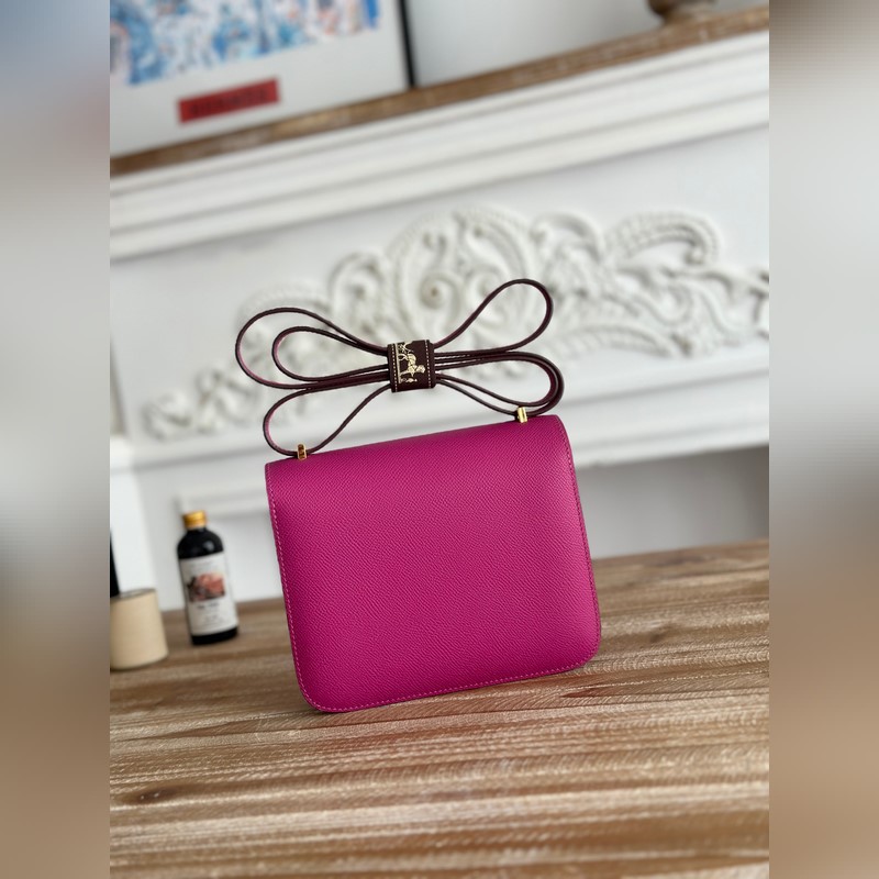 캉캉 스튜어디스 가방 색상: 로즈 퍼플 콘스탄스 19cm 엡솜 손바닥 무늬 송아지 가죽 오토바이 반 수제 왁스 실 봉제