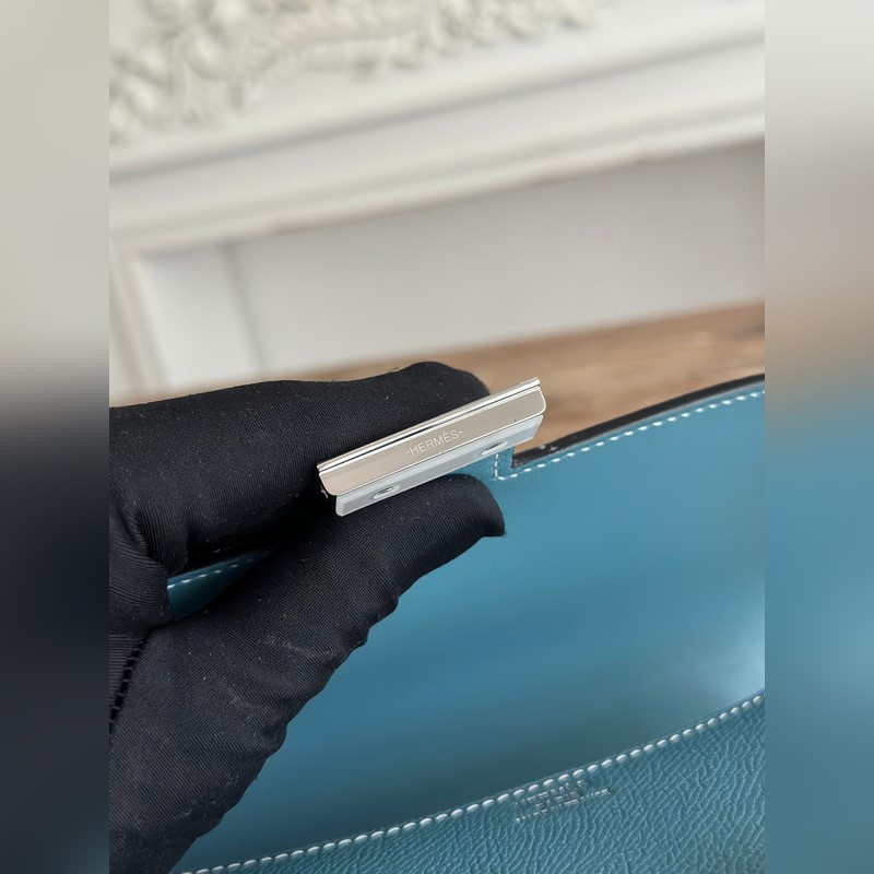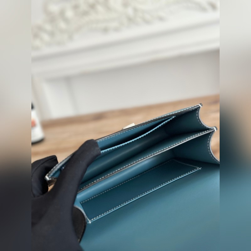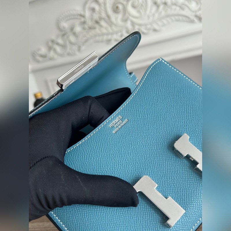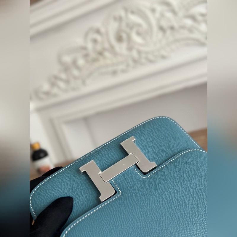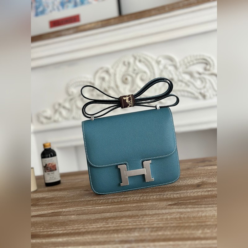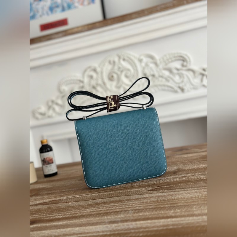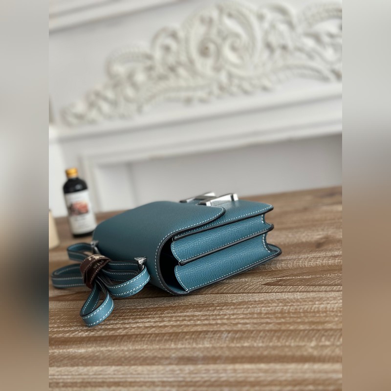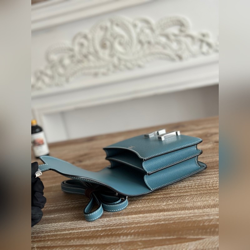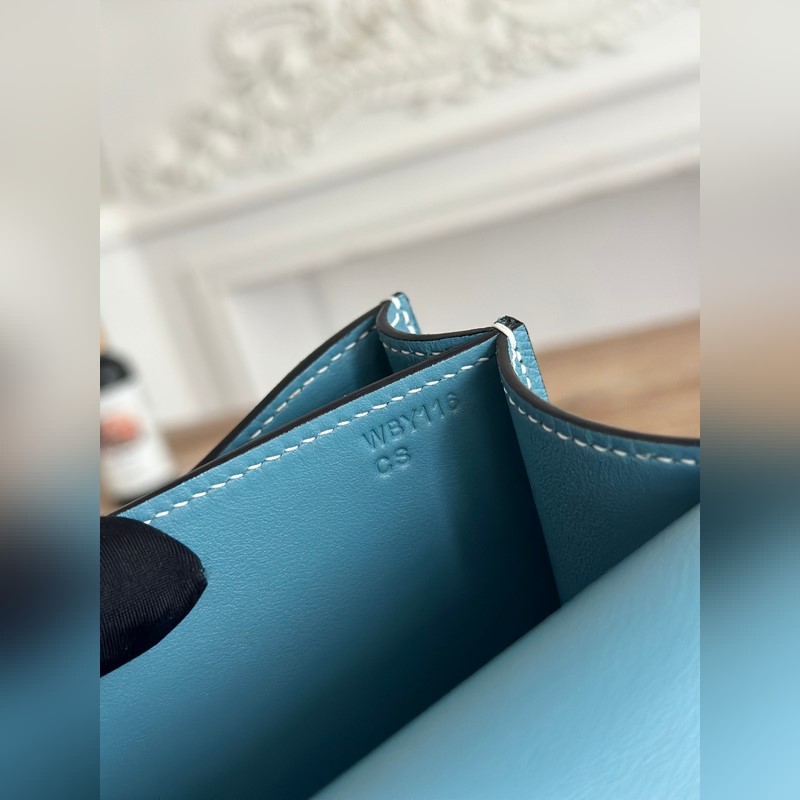 강강 스튜어디스 가방 색상: 데님 블루 콘스탄스 19cm 엡솜 손바닥 무늬 송아지 가죽 오토바이 반 수제 왁스 실 봉제