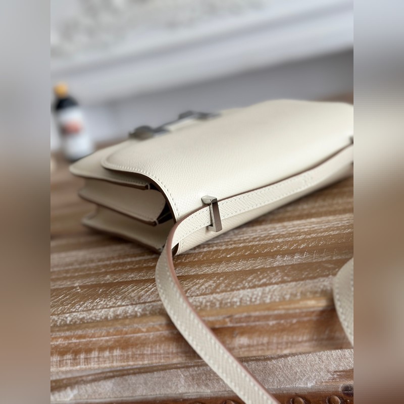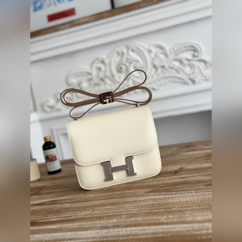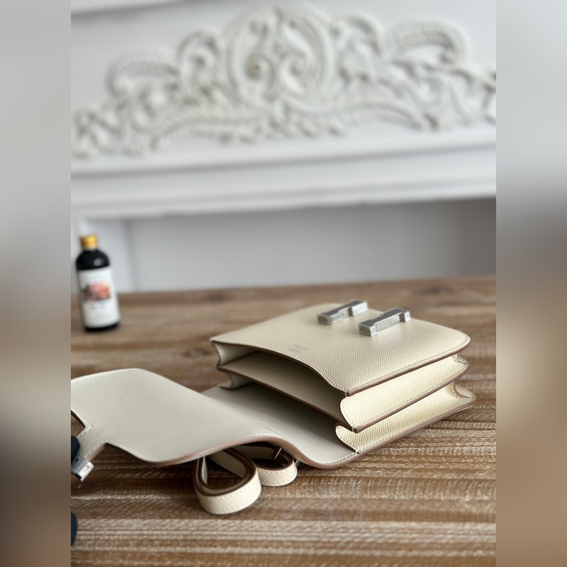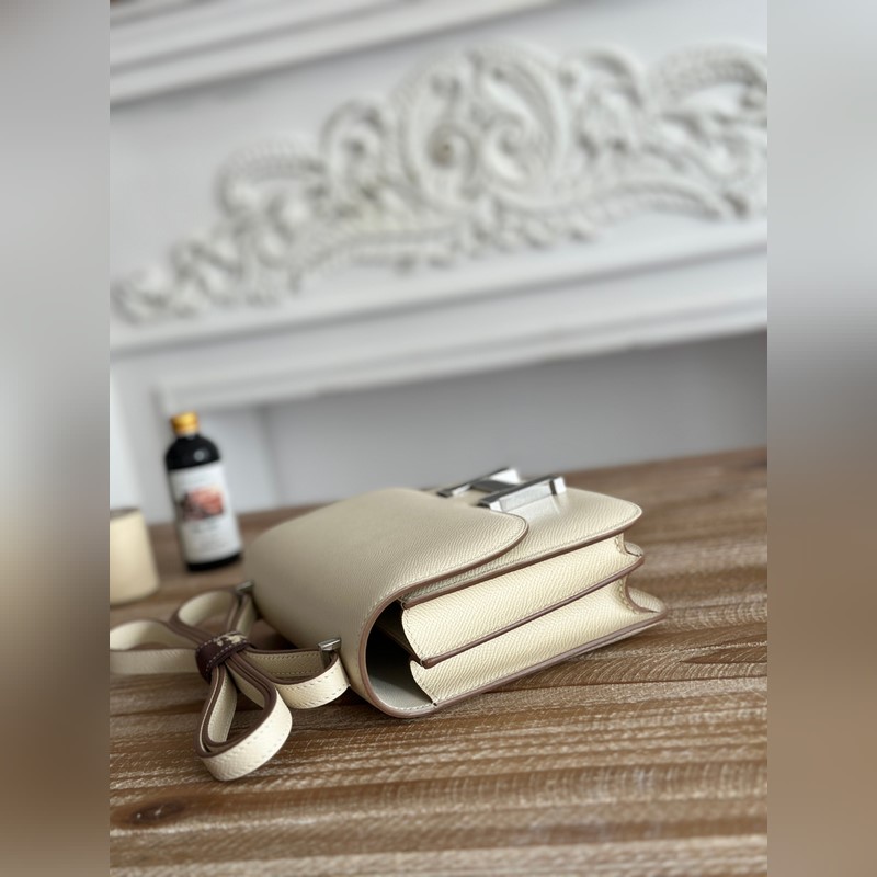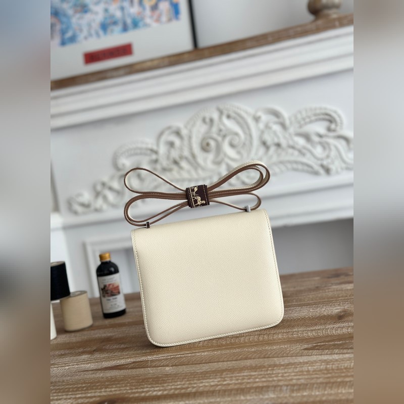 캉캉 스튜어디스 가방 색상: 밀크셰이크 화이트 콘스탄스 19cm 엡솜 손바닥 무늬 송아지 가죽 오토바이 스타일 반 수제 왁스 실 봉제