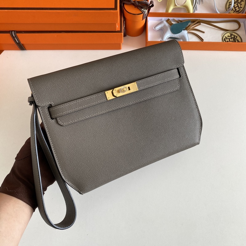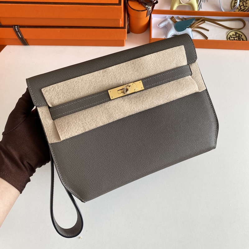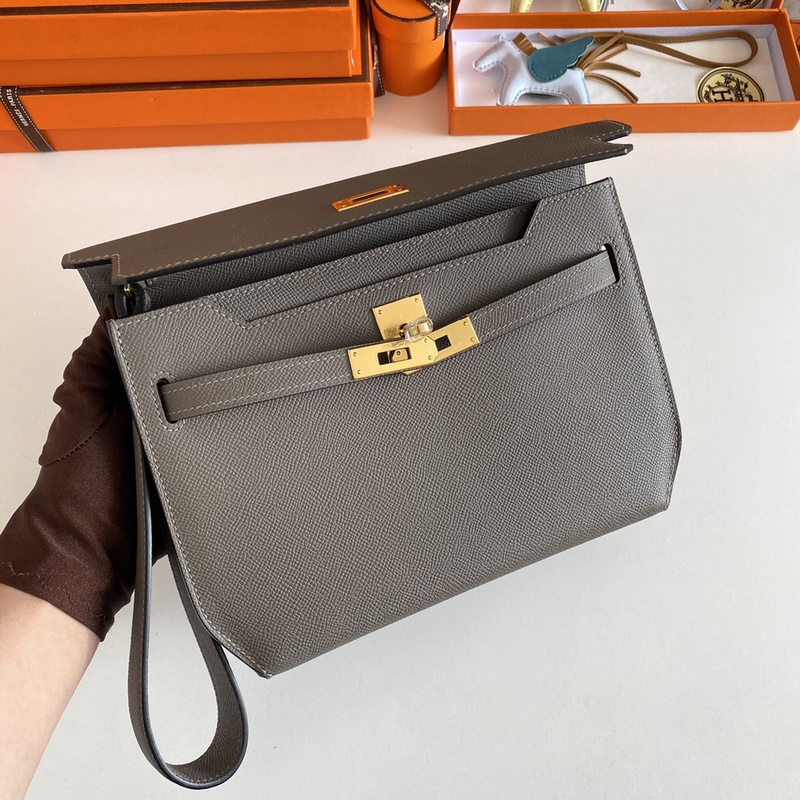 Kelly Depeches 25cm 핸드백/숄더백 epsom 가죽 주석회색 금색 버클 수제 봉제 남녀 공용. (별도 어깨끈 포함) 핸드백으로도 숄더백으로도 사용 가능 한 가방으로 다양한 활용. 핸드 스트랩과 어깨끈 모두 탈부착 가능.