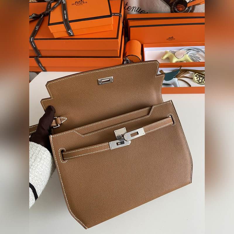 신제품 Kelly Depeches 25cm 핸드백/숄더백 epsom 가죽 ck37 골드 브라운 수제 봉제 남녀 공용. (별도 어깨끈 포함) 핸드백으로도 숄더백으로도 사용 가능 한 가방으로 다양한 활용. 핸드 스트랩과 어깨끈 모두 탈부착 가능.