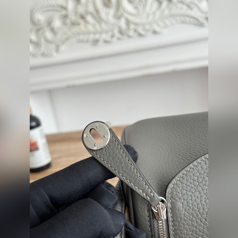 린디 19cm 색상: 아몬드 그린 실버 버튼 TC 가죽 밀랍 실 반 수제 봉제 린디19는 린디 가방의 모든 디테일을 완벽히 재현한 디자인으로 사이드 포켓 지퍼 등 모든 요소가 클래식한 디자인을 유지합니다. 이 귀여운 가방이 얼마나 많은 사람들의 소녀심을 강타했는지