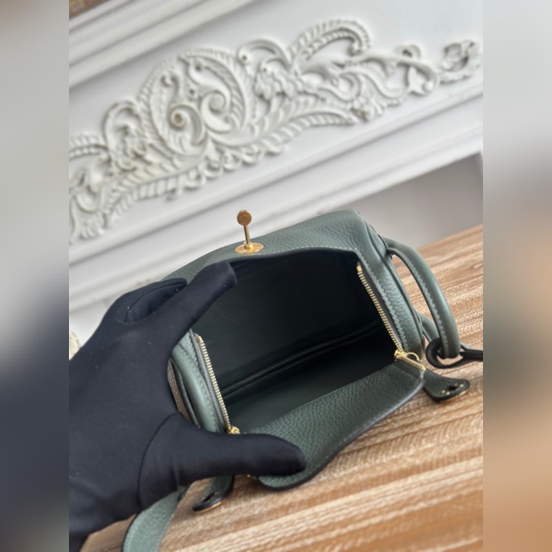 린디 19cm 색상: 소나무 녹색 금색 단추 TC 가죽 밀랍 실 반 수제 봉제 린디19는 린디 가방의 모든 디테일을 완벽히 재현한 디자인으로 사이드 포켓 지퍼 등 모든 요소가 클래식한 디자인을 유지합니다. 이 작은 귀여움이 얼마나 많은 사람들의 소녀심을 강타했는지