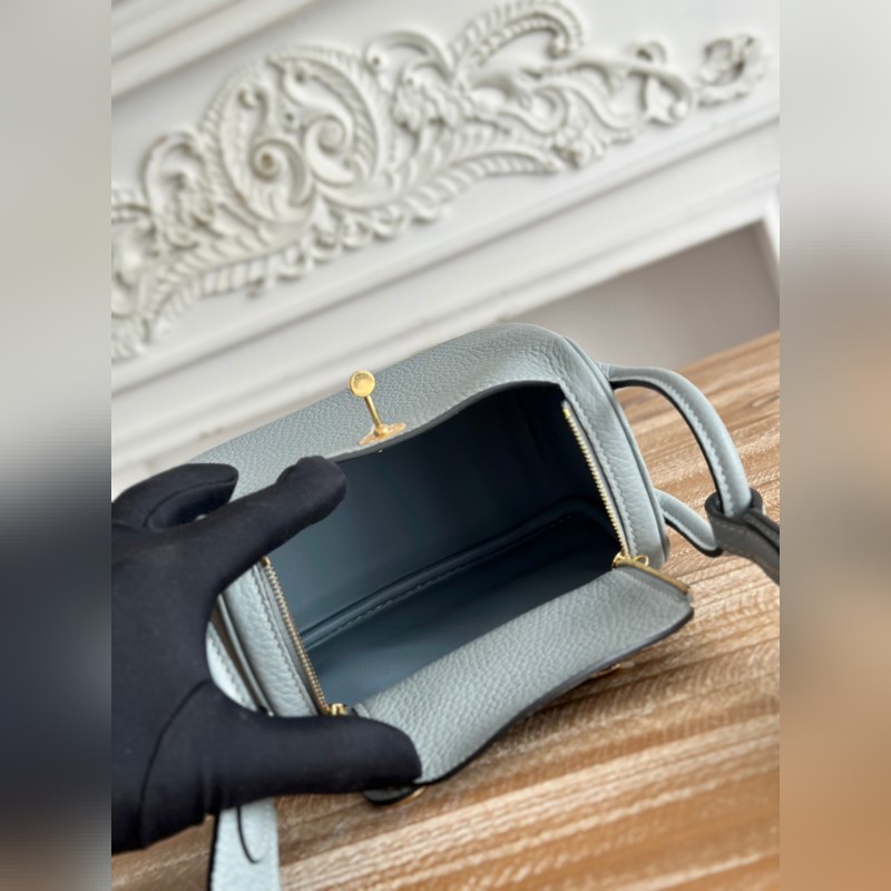 린디 19cm 색상: 아마 블루 골드 버클 TC 가죽 밀랍 실 반 수제 봉제 린디19는 린디 가방의 모든 디테일을 완벽하게 재현한 디자인으로 사이드 포켓 지퍼 등 모든 요소가 클래식한 디자인을 유지합니다. 이 귀여운 가방이 얼마나 많은 사람들의 소녀심을 강타했는지