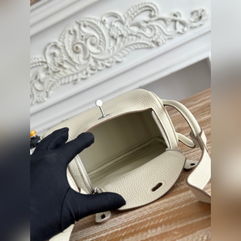 린디 19cm 색상: 밀크셰이크 화이트 실버 버튼 TC 가죽 밀랍 실 반 수제 봉제 린디19는 린디 가방의 모든 디테일을 완벽하게 재현한 디자인으로 사이드 포켓 지퍼 등 모든 요소가 클래식한 디자인을 유지합니다. 이 귀여운 가방이 얼마나 많은 사람들의 소녀심을 강타했는지