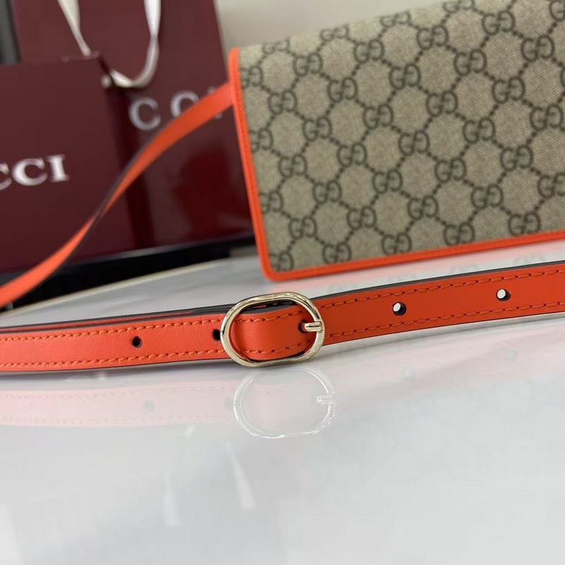 새로운 GG Emblem 컬렉션은 브랜드의 영원한 우아함과 정교한 장인정신을 새롭게 해석합니다. 이 벨트형 지갑은 베이지와 오렌지 컬러로 정교하게 제작되었으며 새롭게 선보이는 GG 알파벳 엮기 패턴 직물로 만들어졌습니다. 세심하게 설계된 여러 수납공간과 소지품을 걸 수 있는 D링이 조화롭게 어우러집니다. 베이지와 다크 브라운 컬러의 새로운 GG 알파벳 패턴 코팅 직물 오렌지 가죽 롤링 마감 타프타 안감 구찌(Gucci) 압인 분리 가능한 소지품을 걸 수 있는 D링 추가 대조색 스티치 내부: 지퍼 포켓 1개 평평한 포켓이 있는 카드 수납공간 다수 조절 가능한 숄더 스트랩(52cm 높이) 스냅 버튼 여밈 모델: 820688. 사이즈: 20cm(가로) x 12.5cm(높이) x 5cm(깊이) 무게: 약 323g 색상: 브라운 오렌지/PVC.