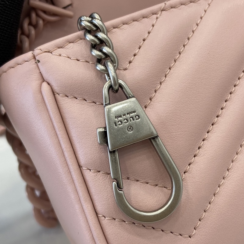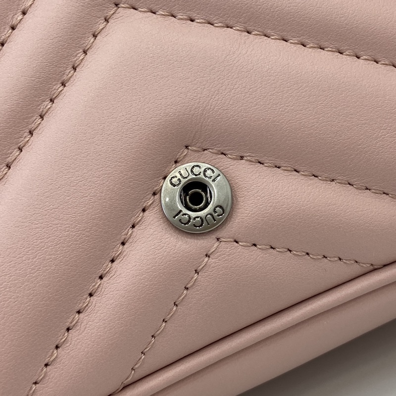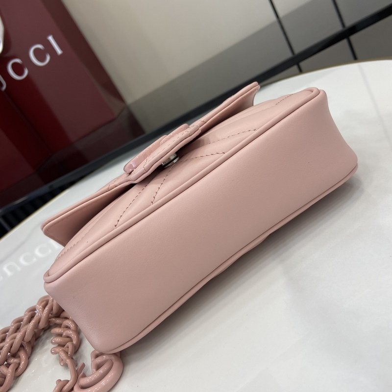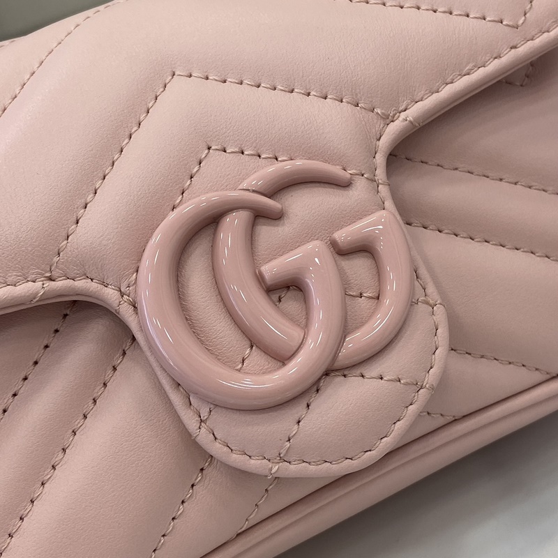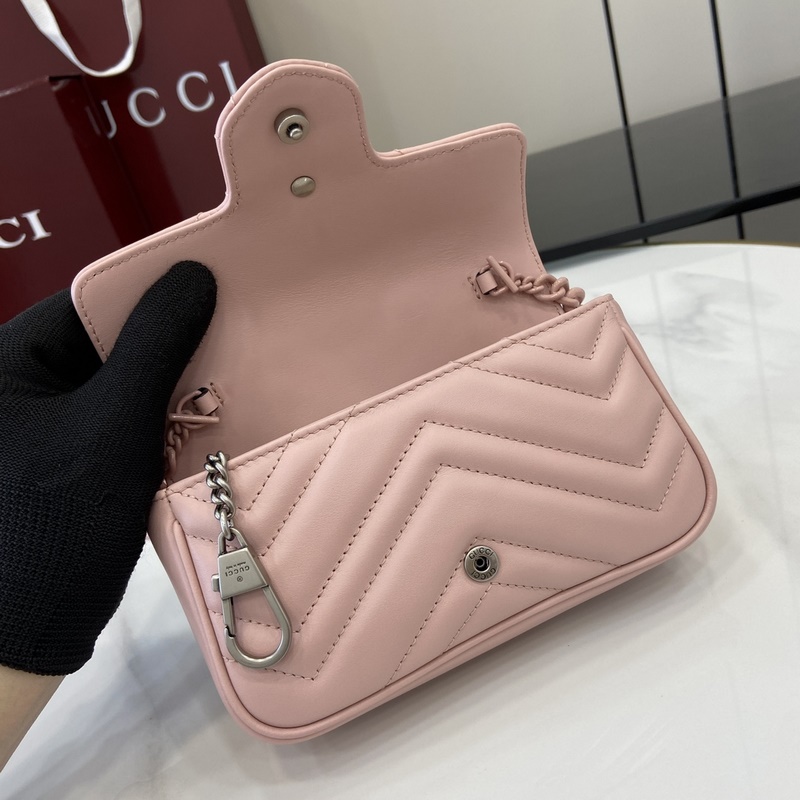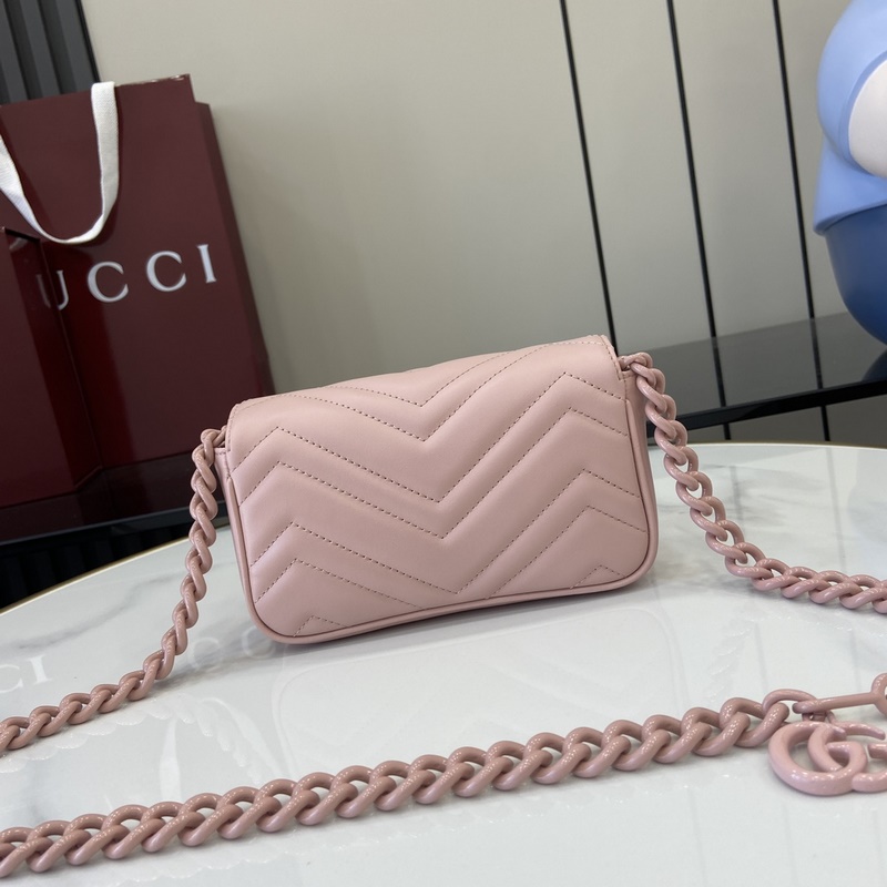 마르몽 체인 마카롱 시리즈 화이트 미니 핸드백 키링이 포함되어 있어 이 가방을 더 큰 핸드백에 고정할 수 있습니다. 구조적인 소프트 실루엣을 자랑하며 플랩 버튼에 GG 메탈 디테일이 더해졌습니다. 메탈 디테일은 70년대 클래식 디자인에서 영감을 받았습니다. 퀼팅 인형 패턴 가죽으로 제작되었습니다. 모델: 699757. 사이즈: 16.5(길이) x 10.2(너비) x 5.1cm(두께) 색상: 핑크 풀 가죽 핑크 G/오리지널 가죽. 모델 키 176cm iPhone Pro 카드지갑 립스틱 수납 가능