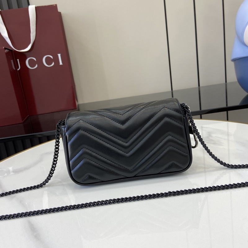 GG Marmont 시리즈 초미니 핸드백. 블랙 퀼팅 V-타입 가죽으