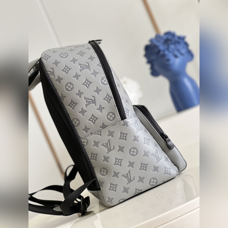 LV [독점 실제 사진 M46105] 그레이 풀 가죽 백팩 시리즈 RACER 백팩 모노그램 섀도우 가죽으로 개성을 표현한 레이서 백팩. 가볍고 부드러운 소가죽에 루이 비통의 클래식한 모노그램 패턴이 섬세하게 엠보싱 처리되어 있으며 편안한 어깨 끈과 랩 어라운드 지퍼가 현대적인 여행 스타일에 잘 어울립니다. 크기: 33*41*18cm