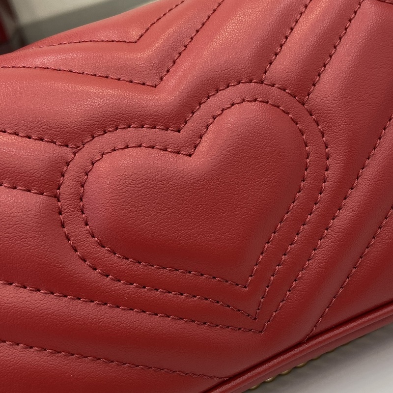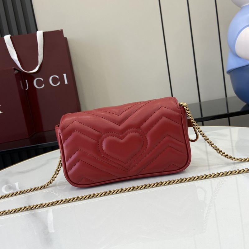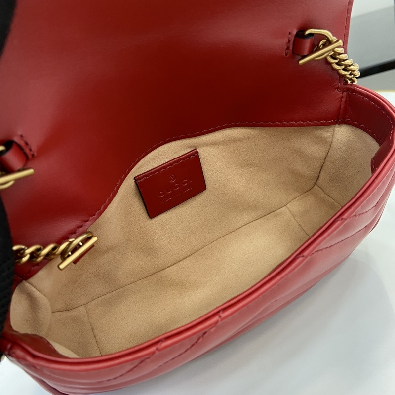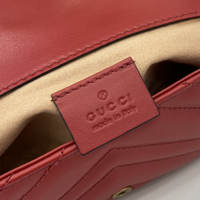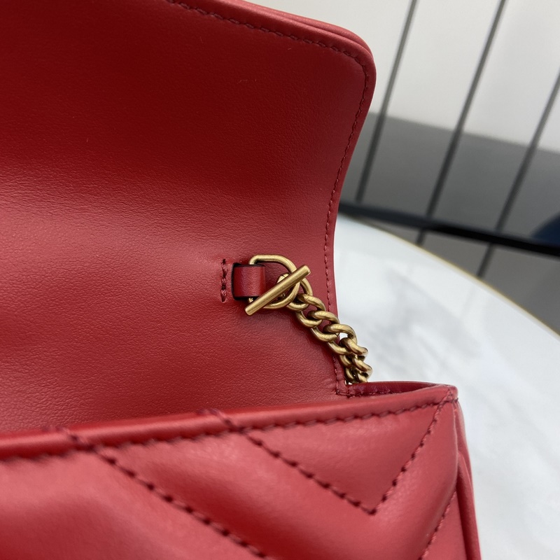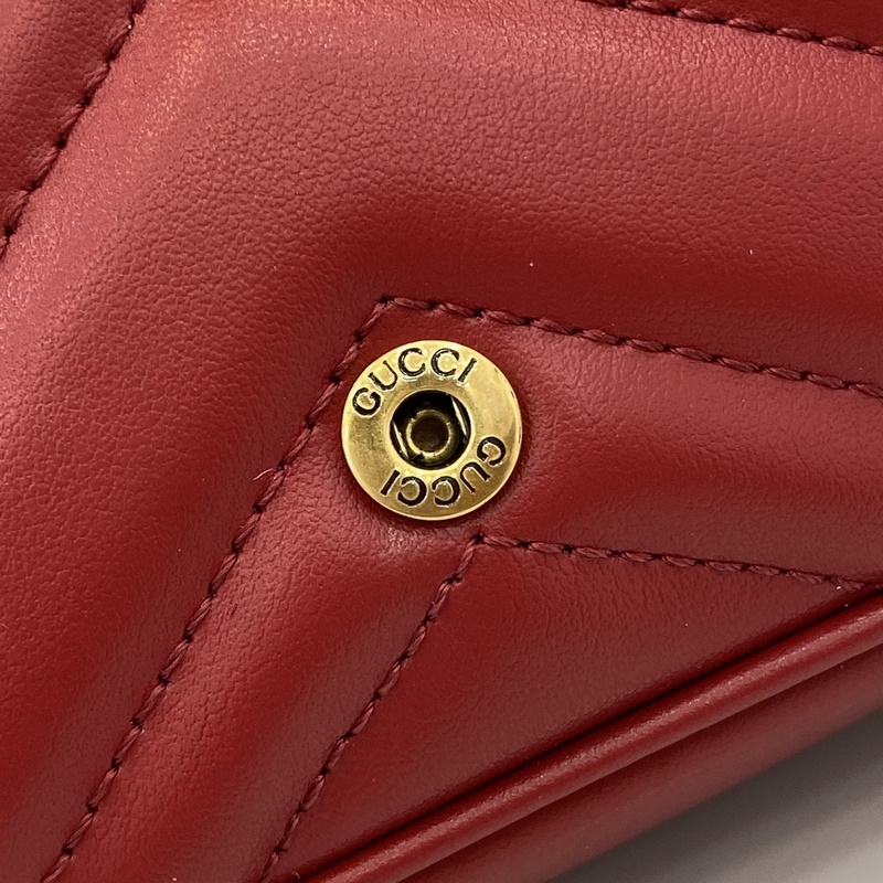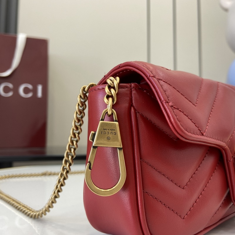 GG Marmont 시리즈 초미니 핸드백. 갈색 퀼팅 V-타입 가죽으로 제작된 이 초미니 핸드백은 클래식한 더블 G 로고가 장식된 고전적인 레드 톤의 액세서리로 전체 디자인에 포인트를 더합니다. 키링은 본 제품을 다른 핸드백에 고정하는 데 사용할 수 있어 디자인의 매력을 한층 높여줍니다. 레드 퀼팅 V-Shape 가죽 골드 톤 액세서리 벨벳 느낌의 초극세사 안감 별도 제공되는 키링(핸드백에 연결 가능) 더블 G 체인 숄더 스트랩(높이 60cm) 무게: 약 0.35kg. 모델 번호: 476433. 사이즈: 16.5(길이)x 10(너비)x 4.5cm(두께) 색상: 레드 풀 가죽 골드 G/오리지널 가죽. 모델 키 176cm iPhone Pro 카드 지갑 립스틱 수납 가능