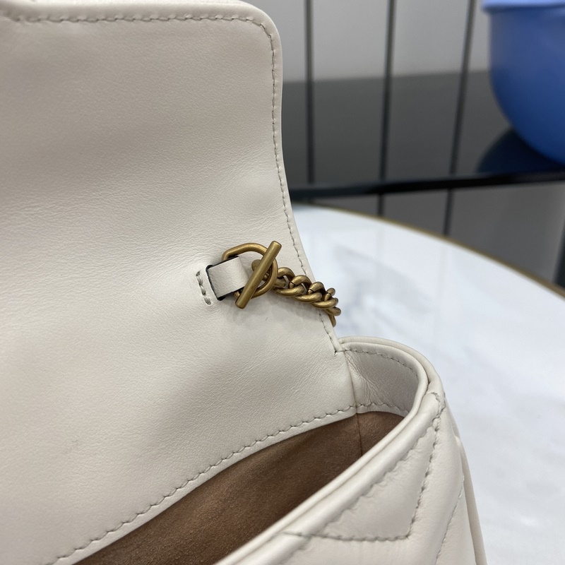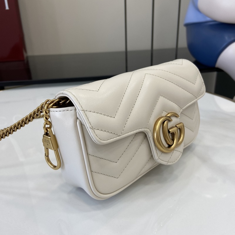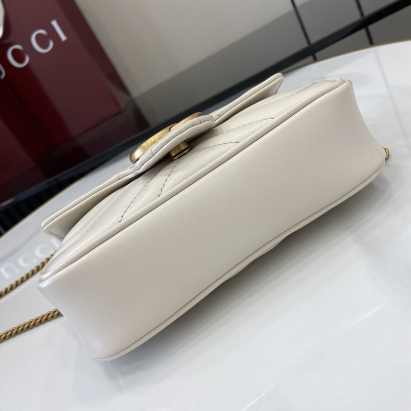 GG Marmont 시리즈 초미니 핸드백. 화이트 퀼팅 V-타입 가죽