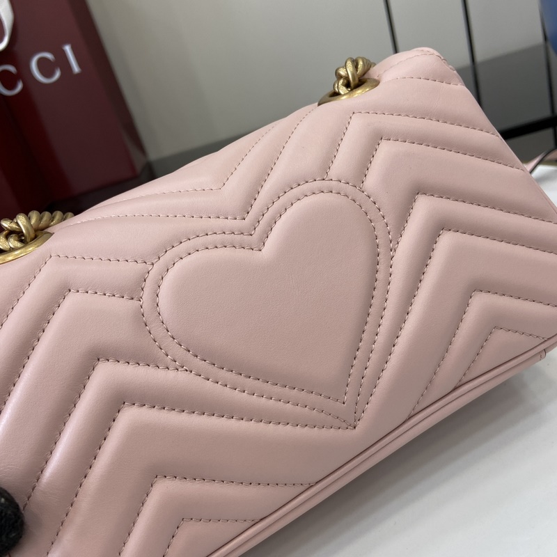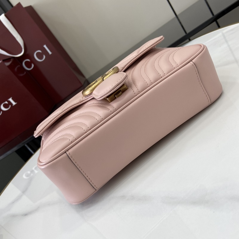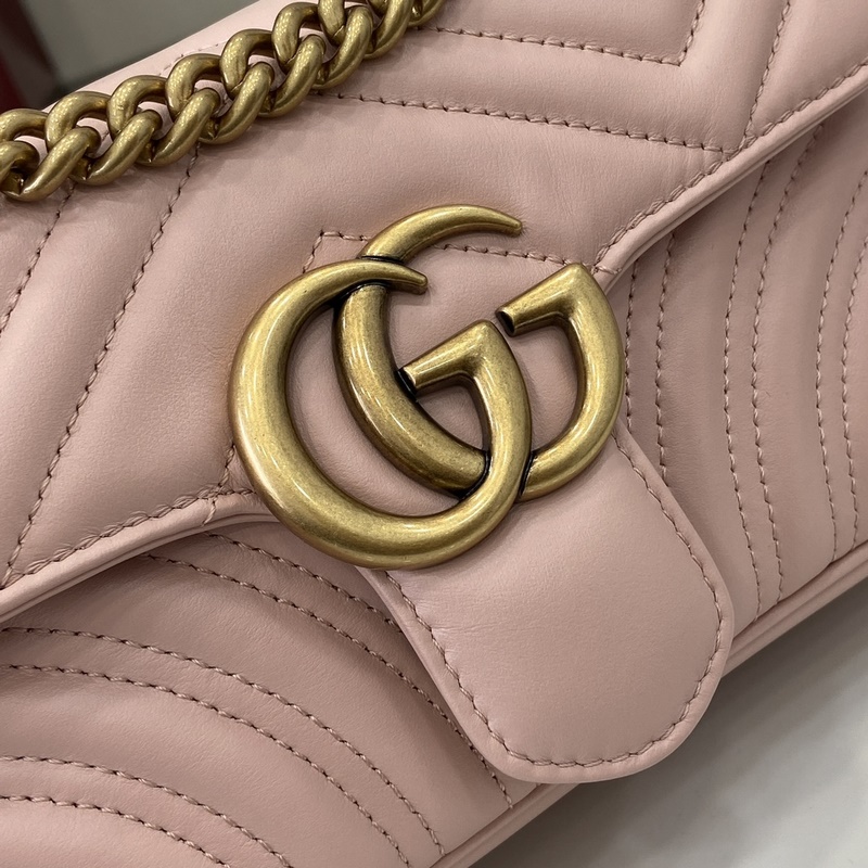 원본 가죽 GG Marmont 시리즈 퀼팅 미니 핸드백. 이 GG Marmont 시리즈 미니 핸드백은 높은 인지도의 디자인 중성적인 핑크색 퀼팅 V자 가죽 소재를 사용했으며 가방 몸체가 약간 뻣뻣한 느낌을 줍니다. 플랩 오픈 디자인에 더블 G 액세서리가 장착되어 있습니다. 다양한 착용 방식이 가능한 이 핸드백은 금속 체인을 쉽게 슬라이드시켜 숄더백과 핸드백 사이를 자유롭게 전환할 수 있습니다. 핑크 퀼팅 V자 가죽 골드 톤 액세서리 벨벳 소재의 초극세사 안감과 더블 G 로고가 특징이며 슬라이딩 체인 스트랩은 숄더 스트랩(높이 55cm) 또는 탑 핸들(높이 30cm)로 사용 가능합니다. 크로스백으로도 활용 가능합니다. 스프링 버클 플랩 무게: 약 0.6kg. 모델: 446744. 사이즈: 22(가로) x 13(높이) x 6cm(깊이) 색상: 연분홍색 풀 가죽/오리지널 가죽. 모델 키 177cm 최대 수납 가능 품목: iPhone Pro Max/Plus Airpods 이어폰 소형 지갑 립스틱