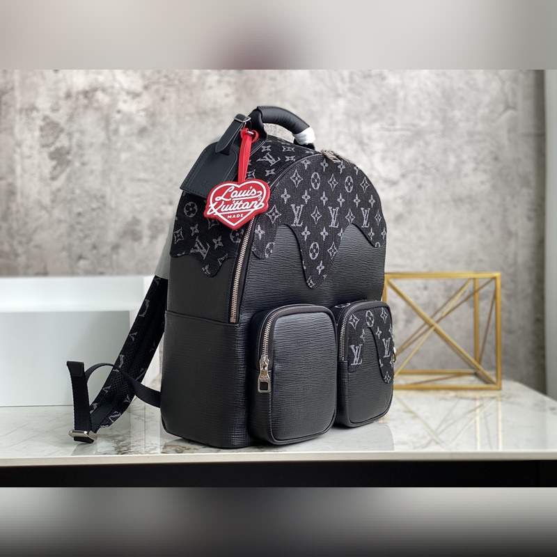 LV M45973 그레이(데님) 백팩 멀티 오켓 백팩 루이비통과 일본 디자이너 니고가 다시 한 번 힘을 합쳐 모노그램 드라이 디자인을 멀티 오켓 백팩에 적용했습니다. 아이코닉한 모노그램 데님은 세밀한 타우리옹 가죽에 부드러운 촉감을 더해 주며 하트 모양의 라벨이 눈길을 사로잡습니다. 또한 주머니와 노트북을 넣을 수 있을 만큼 넉넉한 메인 수납공간을 갖추고 있습니다. 크기: 30 x 40 x 15.5cm.