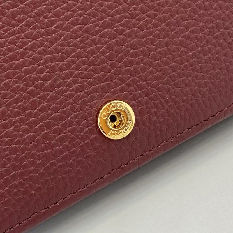 GG Marmont 시리즈 체인 지갑은 대비되는 컬러의 안감으로 눈길을 사로잡는 디자인을 선보입니다. 시그니처 더블 G 디테일이 포인트인 이 제품은 탈부착 가능한 체인 숄더 스트랩이 함께 제공되어 낮과 밤을 가리지 않는 실용적인 스타일링이 가능합니다. 컴팩트한 사이즈에도 불구하고 실용성은 뛰어나며 내부 공간이 체계적으로 구성되어 카드 등 필수품을 수납하기에 충분합니다. 블랙과 구찌 안코라 레드 가죽 골드 톤 디테일 구찌 안코라 레드 타프타 안감 더블 G 내부: 카드 수납공간 6개 평평한 포켓 1개 지퍼 포켓 1개 오픈 수납공간 1개 거울 탈부착 가능한 체인 숄더 스트랩(60cm 높이) 스냅 버튼 개폐 무게: 약 0.40kg 모델: 497985 사이즈: 20cm(가로) x 12.5cm(높이) x 4cm(깊이) 색상: 블랙/앵카라 레드.